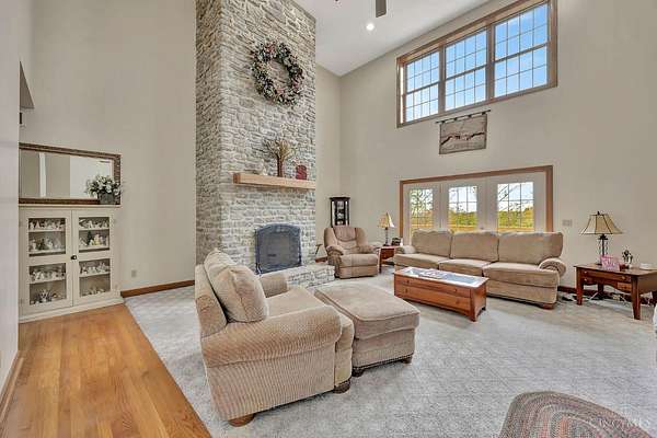 Est $4,687/moOVER 3,000 sq. ft. living space PLUS Full Walk-out bsmt. w/10 ft. ceilings a stone fireplace and ruff-in bath easily finished into a whole other living space for in-laws, adult children or care takers suite with private entrance. Balcony library overlooking great room. Private pedestrian entrance to office from driveway. Owner built this family home with the care rarely seen today: 12 inch on center floor trusses, 6 inch stud walls, handicap accessible.