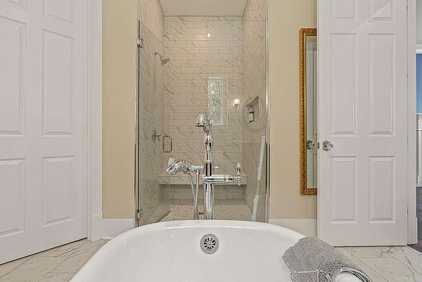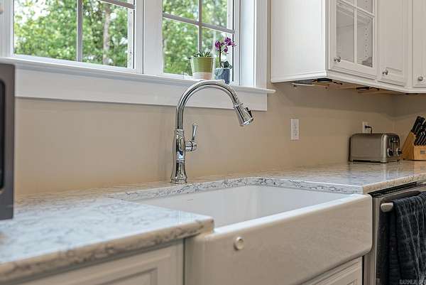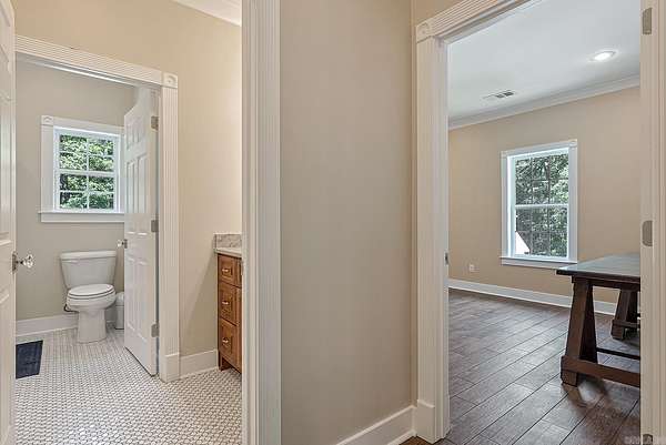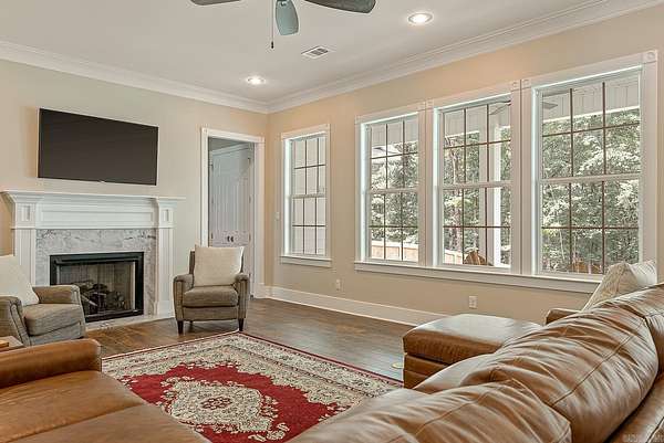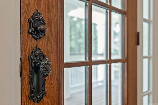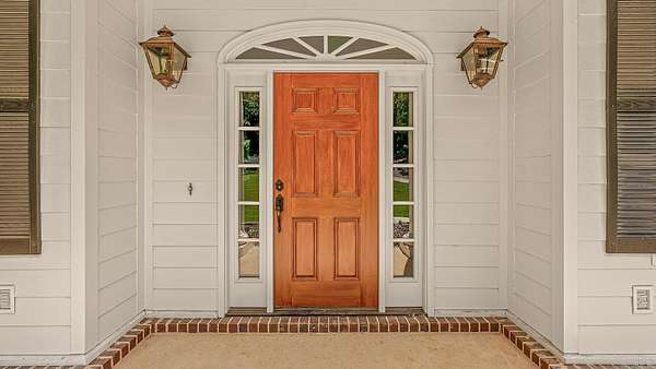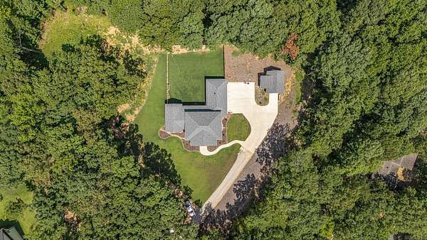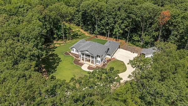 Nestled on 6.6 wooded acres in the Valley View School District, this 2023 custom-built home perfectly blends timeless Southern charm with modern luxury. Spanning 3,270 sq. ft., it features 4 bedrooms, 3.5 baths, and elegant details throughout, from stately white pillars and copper gas lanterns to marble fireplace surrounds and a cast-iron soaking tub. The main level offers a formal dining room, dedicated office, kitchen with high-end appliances, and a custom dog-washing station. Upstairs includes a second living area and three spacious bedrooms. The three-stall garage includes a 10'x10' concrete safe room, while the detached 550 sq. ft. heated and cooled garage with patio adds versatility. Enjoy peaceful mornings on the covered porch overlooking a private, fenced backyard, and watch for deer and turkey near the creek beyond. This one-of-a-kind property offers serenity, sophistication, and convenience just minutes from the heart of Jonesboro.