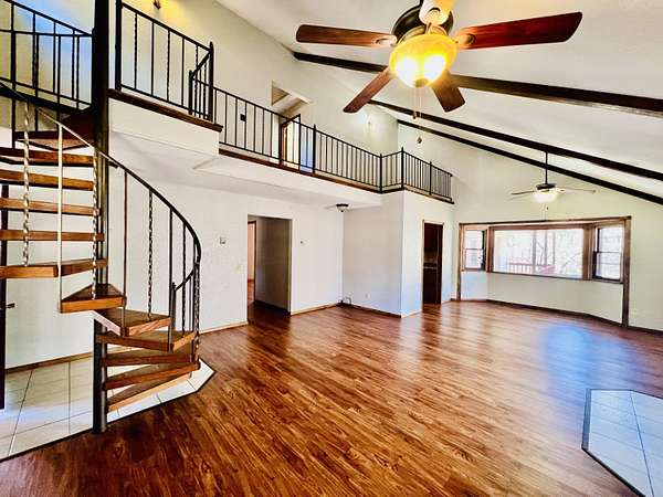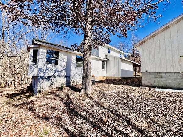 Explore this delightful 1.5-story residence, set on 1.86 acres and featuring a magical tree house. Tucked away on a generous plot, the home features a spacious living room with high ceilings and a modern kitchen equipped with premium cabinets, soft-close drawers, and a walk-in pantry. The ground floor offers a large master bedroom suite with a walk-in closet and a bathroom complete with a walk-in shower and garden tub. There's also a laundry room and a flexible bonus room, perfect for an office or additional bedroom. Upstairs, you'll find two bedrooms, a bathroom, and a loft space. Outside, the property includes the tree house, tranquil wooded views, a rustic covered porch/deck, and updates such as the HVAC, roof, windows, and flooring (2008). Additional amenities feature radiant ceiling heating on both floors, an attic fan, excellent internet service, a detached garage with 220 wiring, a seasonal creek, and proximity to the Fort Wood area, national forests, and more.