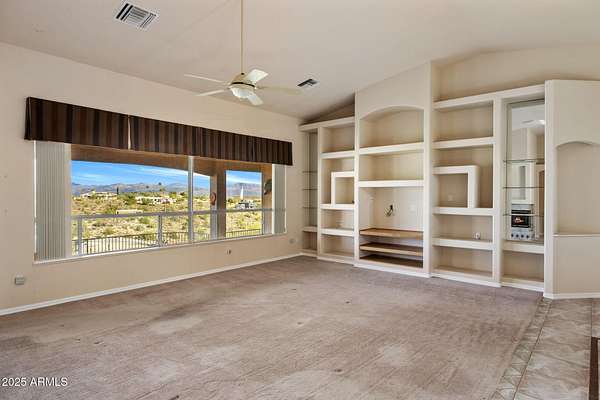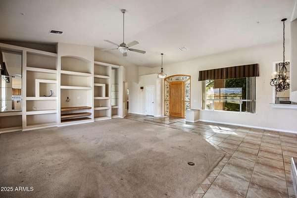 Set on a massive 78,251 square foot lot, this 4 bedroom, 3 bathroom, no-HOA home includes a 3 car garage, guest quarters with a private entrance, and incredible potential to make it your own. The spacious layout features a central kitchen with an island, pantry, wall oven, and skylights that bring in natural light. The primary suite includes dual sinks, a separate tub and shower, walk-in closet, and private water closet. The backyard offers an expansive covered patio with 180 degrees of mountain views, desert landscaping, and plenty of room to expand or reimagine the pool and outdoor space. Located just minutes from scenic trails, golf, and downtown Fountain Hills.