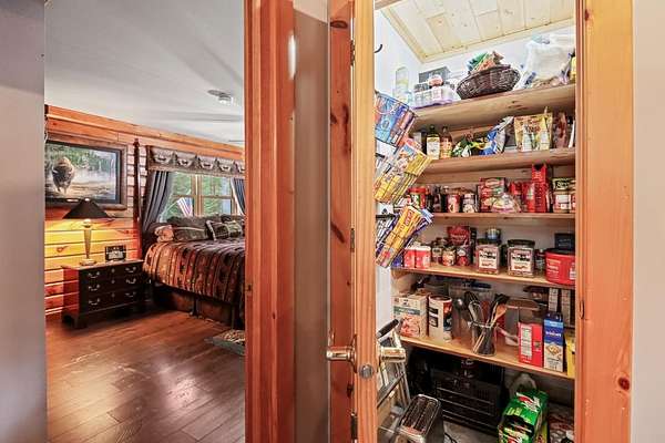 - Bath In Primary Bedroom, Cathedral Ceilings, Ceiling Fans, High Ceilings, Main Level Primary, Pantry, Vaulted Ceilings