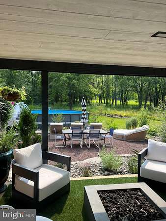 Tranquil and magnificent in the desirable award winning Hopewell Township schools! This extraordinary residence offers the perfect blend of peaceful country living and high-end design-no expense spared. Nestled in a private, natural setting, the home delivers a true retreat while showcasing exceptional craftsmanship and thoughtfully curated upgrades throughout. The interior is a masterclass in modern comfort and style, featuring dramatic architectural details, custom millwork, statement lighting, and seamless flow between living and entertaining spaces. The chef's kitchen is nothing short of spectacular, appointed with premium Wolf appliances, custom cabinetry, sleek countertops, and an oversized island designed for gathering and entertaining. Luxurious, spa-inspired bathrooms elevate daily living with designer tile, custom vanities, frameless glass showers, and boutique-hotel finishes. Serene bedrooms provide restful retreats, including a stunning primary suite that feels both indulgent and inviting. Outdoor living is equally impressive. A covered patio with fire feature creates a year-round entertaining space overlooking professionally landscaped grounds, while the private pool area offers a resort-like escape surrounded by nature. Surrounded by preserved land, you'll enjoy quiet mornings to lively evenings under the stars. The outdoor spaces are designed for both relaxation and enjoyment. Striking exterior architecture, tranquil views in every season, and uncompromising attention to detail complete this exceptional offering. All the peace of country living-paired with the upgrades you'll absolutely love. Truly amazing!