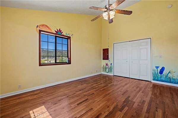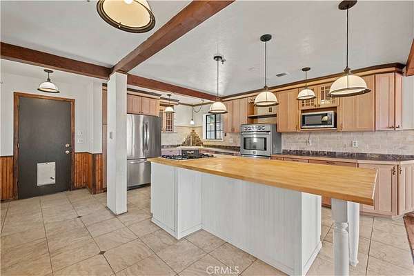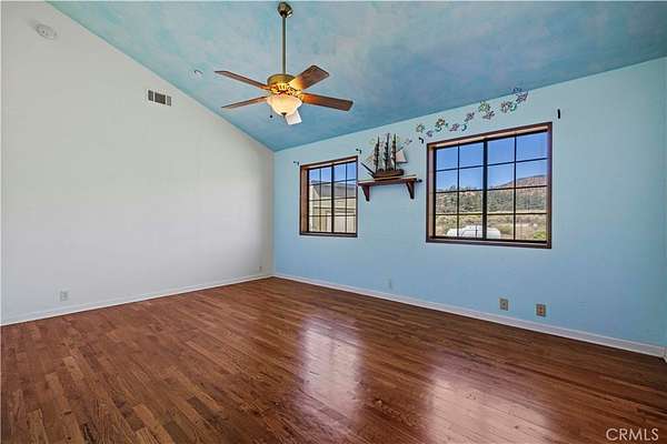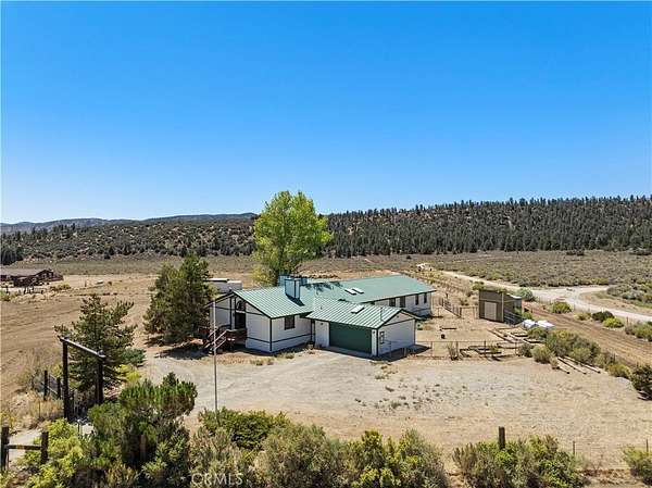 Nestled in the mountains and surrounded by natural beauty, this magnificent estate combines timeless craftsmanship with modern updates on over 5 acres bordering 600 square miles of National Forest. Recently refreshed with new exterior and interior paint and beautifully refinished hardwood floors, the single story custom home offers sweeping panoramic views and trails right outside your door. The residence features 5 bedrooms, 2.5 bathrooms, and nearly 3,600 square feet of thoughtfully designed living space. The expansive living room showcases vaulted ceilings with exposed beams, while the chef’s kitchen is equipped with a walk in pantry, double oven, marble countertops, artistic backsplash, custom cabinetry, and a striking butcher block island. Radiant heated floors warm the kitchen and dining areas, and three fireplaces add inviting charm throughout the home. The primary suite is a private retreat with vaulted ceilings accented in exotic Asian birch, a cozy fireplace, and a spa inspired bath with a cast iron tub and oversized shower. Built for both beauty and resilience, the property includes a lifetime metal roof, full sprinkler system, dual propane tanks, boxed in eaves, complete fencing with an electric gate, and a backup generator powering the entire home and well pump. Equestrian facilities include corrals and a powered tack room, offering a ready made retreat for horse enthusiasts. Located just 45 minutes from Santa Clarita, this rare estate delivers the perfect blend of seclusion, modern updates, and timeless natural beauty.