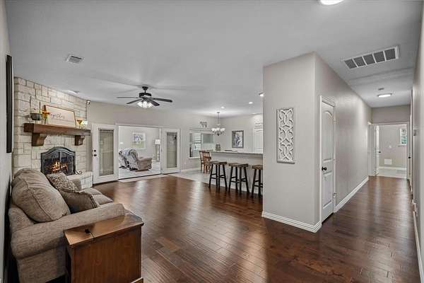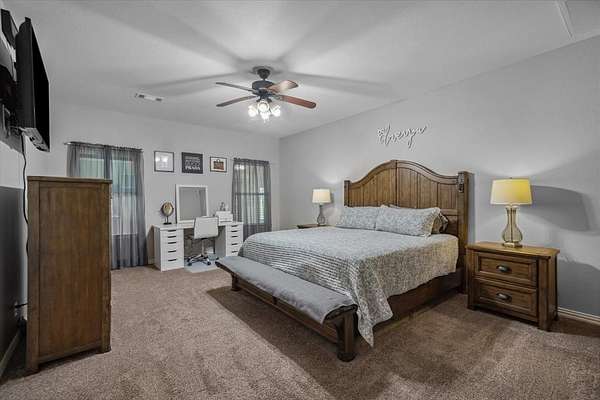 Welcome home to space, comfort, and the kind of flexibility that is hard to find. This custom 4-bedroom, 2-bath home sits on 2.83 MOL acres with NO HOA in and offers a total of 3,555 square feet designed for real living. Built in 2016, the original home includes 2,755 square feet, and an 800-square-foot addition was added in 2020 to give even more room to spread out. Best of all, the addition can be fully closed off from the rest of the home and has its own mini-split for separate heating and cooling, making it ideal for guests, extended family, or a private bonus space. The kitchen and bathrooms feature granite countertops, custom cabinetry, and soft-close cabinets and drawers. The spacious primary suite offers dual sinks, a separate shower, soaking tub, and two large walk-in closets. You’ll also appreciate the separate office, abundant closet space throughout, energy-efficient features, and above-ground storm shelter inside the home for added peace of mind. Outside, the property is just as functional with an attached oversized 3-car garage, hail-resistant metal roof, insulated 2-stall barn, 18x30 insulated workshop with loft storage, and a 24x48 covered carport perfect for an RV, boat, or extra parking. Located off Hwy 80 between Elmo and Wills Point, this property offers room to live, work, and enjoy country life with convenience.