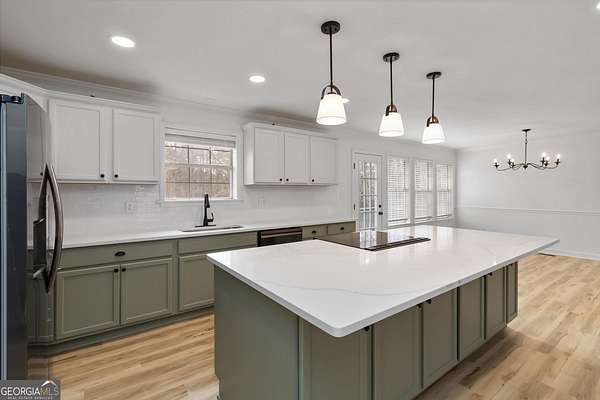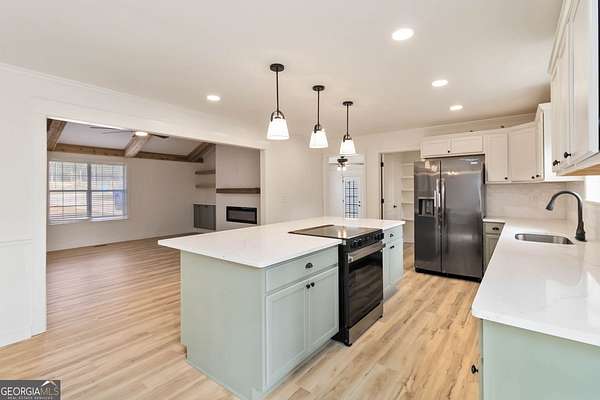 Completely remodeled and upgraded home in McDonough featuring high-quality finishes throughout. This property has been fully updated from top to bottom with all new flooring, fresh interior and exterior paint, and multiple custom-built spaces added for enhanced functionality. The chef-inspired kitchen boasts custom tile flooring, an oversized 10-foot countertop, brand new high-end appliances including a refrigerator, dishwasher, and oven/stove, plus a large sink overlooking the backyard. A separate walk-in custom pantry offers exceptional storage, while the dedicated custom walk-in laundry room includes brand new premium gas washer and dryer. The primary bedroom suite has been fully redesigned, featuring a completely remodeled bathroom with double vanities, a spacious double walk-in tile shower with floor-to-ceiling tile, a built-in bench, shower cubby, and a generous walk-in closet. All additional bedrooms also include walk-in closets. The secondary bathroom has been upgraded with custom tile, modern fixtures, and a convenient shower/tub combination. Exterior updates include a newly built custom front porch with cedar beams and cedar shutters, a new back porch, fresh exterior paint, and a small fenced backyard. This extremely private estate also offers outstanding outbuildings: a separate 2-car detached garage with its own second driveway access, plus a massive workshop out back spanning over 1,000 square feet with water, electricity, and a separate enclosed room with plumbing already accessible-providing excellent flexibility for a future office, studio, guest quarters, or expanded workshop needs. Potential exists for an additional driveway to enhance access. With extensive upgrades, abundant functional storage, and versatile additional spaces, this home delivers exceptional usability for a variety of living arrangements. This version flows naturally, highlights the luxury upgrades, and strongly emphasizes the privacy and outbuilding features you wanted. Let me know if you'd like any adjustments in tone, length, or emphasis!