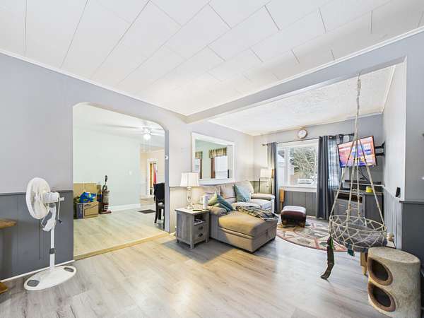Looking for a property in which you can reside and yet take a few steps into your own separate office or shop space? Well, here it is! This well-maintained and thoughtfully updated farmhouse conveniently located on 3 acres in downtown Mapleton is currently set up as a residence with a functioning separate-entry hair salon business space. The hair salon has a private office, half bath, its own septic system and a separate outside entry. It could easily be transformed into another similar type business venture or an income-producing, short-term or long-term rental space - so many options! The spacious main house, which has its own separate septic system, also has a versatile first floor room perfect for a bedroom or office, with an attached bath. The rest of the move-in ready house features an open kitchen with ample counter space and cabinets, a separate dining room, cozy and bright living room, 3-4 bedrooms along with a large mudroom & convenient laundry area. The two full bathrooms have been tastefully updated. And, there is a spacious sunroom and enclosed porch where you can relax and look out over the spacious level yard! There is a fenced area for privacy as well as an open field bordered by mature trees - enjoy the 3 acre lot or parcel off a portion to sell. Enjoy the convenience of nearby access to the snowmobile/ATV trail---a great bonus if you choose to convert the hair salon space into a short-term rental. With numerous updates, an oil furnace alongside a separate wood furnace for versatile heating, an energy efficient heat pump water heater and a large outdoor storage shed, this property combines charm, functionality and entrepreneurial potential. Call Ginger Buck to see this property today at 207-551-9368.