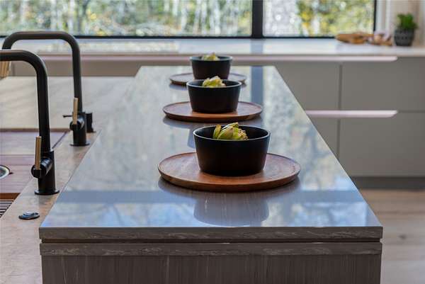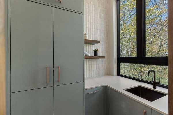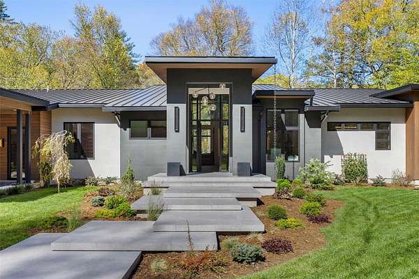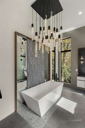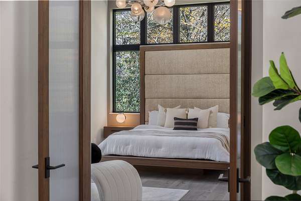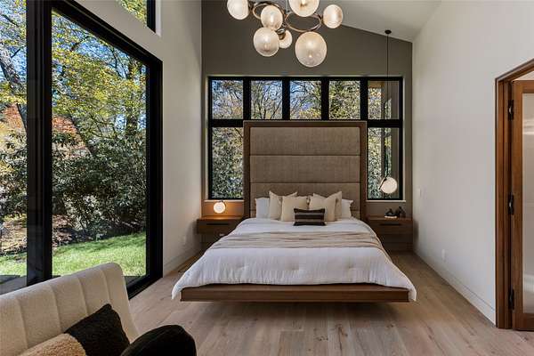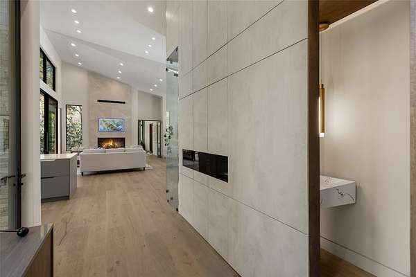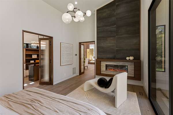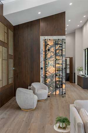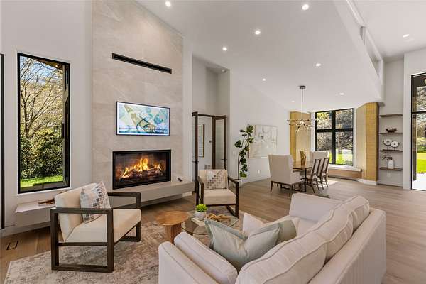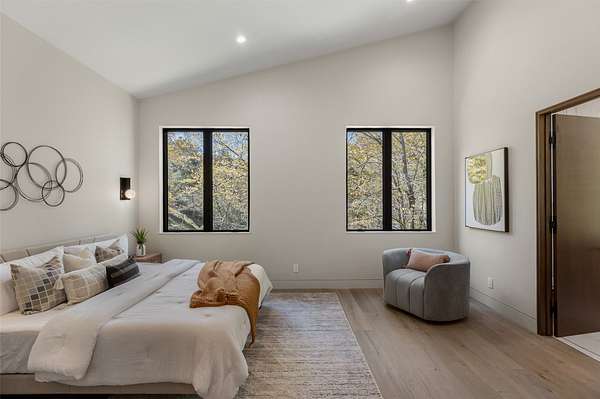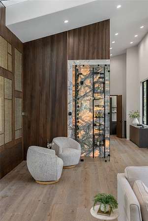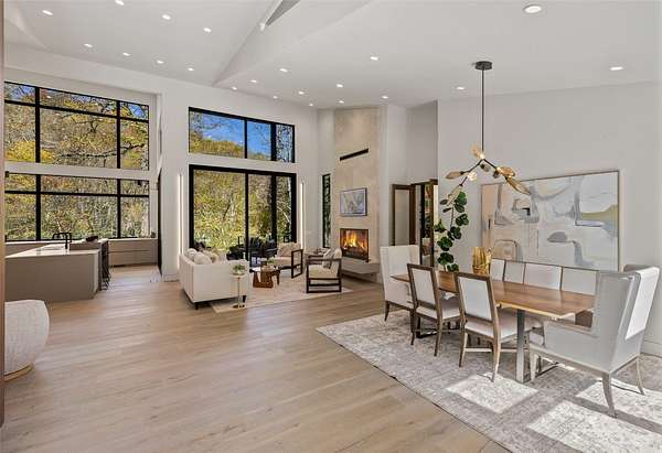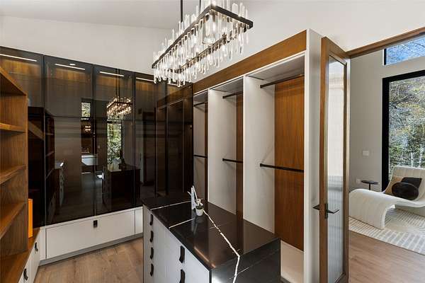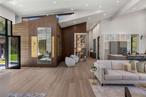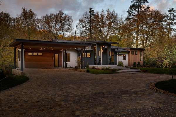 This newly constructed home redefines luxury mountain living. Blending modern and contemporary architecture with organic materials, it features soaring 25-foot ceilings, floor-to-ceiling glass framing views of the Cullasaja River, and seamless indoor-outdoor flow. The gourmet kitchen showcases Miele appliances, quartzite countertops, and dual entertaining decks, one overlooking the river and another where the soft sound and partial view of a neighboring waterfall enhances every gathering. The primary suite is a private retreat with a custom walnut fireplace wall, spa-inspired bath, and terrace that opens to nature. A hidden powder room adds an unexpected, design-forward touch, while a climate-controlled glass wine gallery lined with backlit marble serves as a functional work of art. Two guest suites and a sophisticated interplay of textures and finishes complete the home. Perfectly positioned just minutes from the great outdoors and convenient to restaurants, boutiques, art and all that downtown Highlands and nearby Cashiers have to offer.