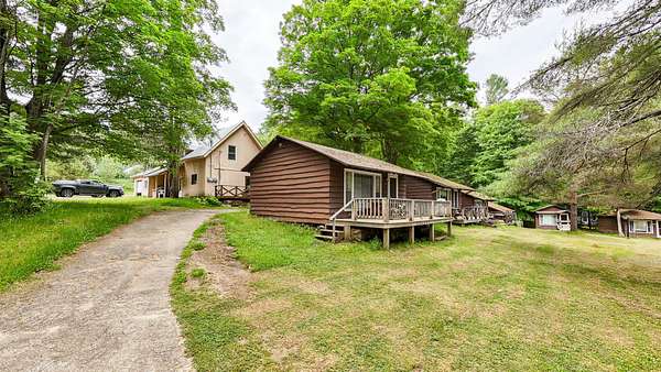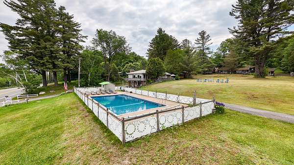 Unique Waterfront Property with Multiple Income Opportunities Located just minutes from the charming village of Tupper Lake, this exceptional 20-unit property offers both privacy and convenience, with endless possibilities for investment or personal use. Nestled on over 7 acres in the Adirondacks, this property features 19 separate buildings, including a spacious three-bedroom, two-bathroom main house, perfect for owner occupancy and contains an office right below the house if you choose to use it as business or it could be used for more space. Among the structures, you'll find a charming duplex near the center of the property that also has a great porch attached, along with several beautiful cabins (1-2 bedrooms each)with 4 of them having their own fireplaces, providing the potential for a vacation rental business, a retreat center, or even a small-scale resort that can be used four seasons. The central courtyard is home to a heated swimming pool, surrounded by a large, open yard offering plenty of space for family gatherings, games, or outdoor events. With its stunning beach frontage, a boat launch area, and direct access to Tupper Lake, outdoor enthusiasts will enjoy the serene water views making it a dream for fishers and recreational opportunities. Additionally, the property borders the renowned Tupper Lake 18-hole Championship Golf Course, making it ideal for golfers looking for a peaceful retreat while being just a short drive from town. Whether you envision a getaway destination, a long-term investment, or a private family estate, this property provides ample space and flexibility for a variety of uses. Don't miss out on this one-of-a-kind opportunity!