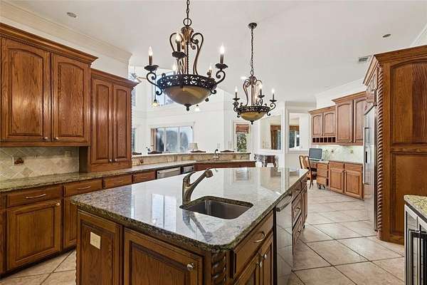 - Built-In Features, Built-In Wine Cooler, Cable TV Available, Chandelier, Decorative Lighting, Double Vanity, Eat-In Kitchen, Flat Screen Wiring, Granite Counters, High Speed Internet Available, Kitchen Island, Multiple Staircases, Natural Woodwork, Open Floorplan, Paneling, Pantry, Sound System Wiring, Vaulted Ceiling(s), Wainscoting, Walk-In Closet(s), Wet Bar