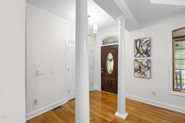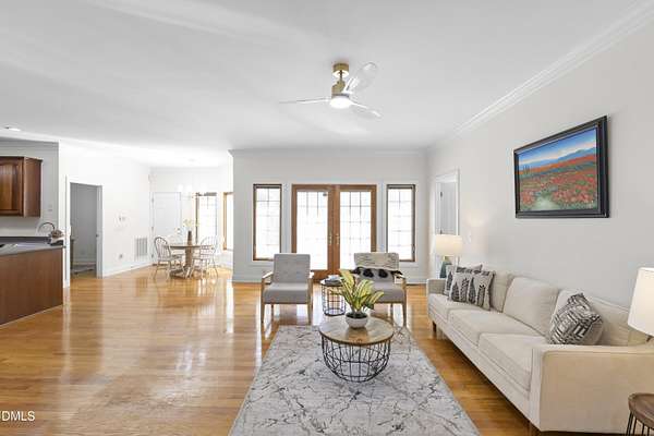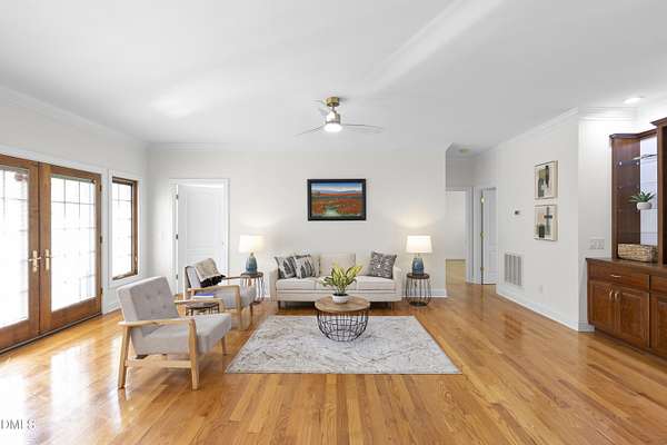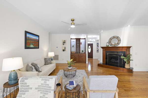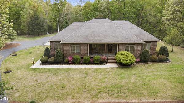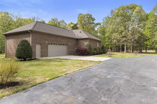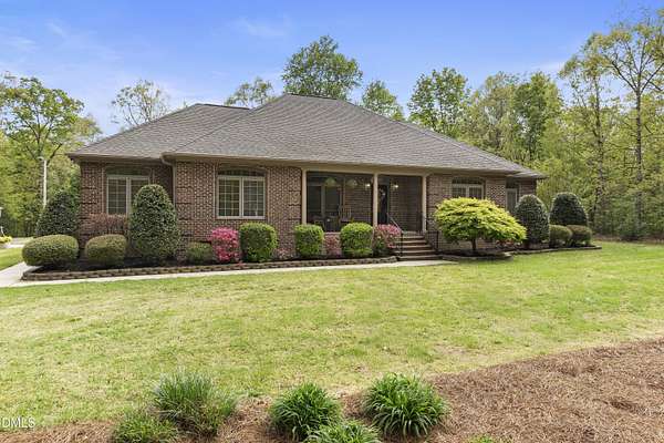 Custom-built home on over 5 private acres in Chatham County! This well-maintained one-level home offers a functional layout with spacious bedrooms and beautiful hardwood flooring throughout--no carpet. Enjoy a cozy gas fireplace, open living spaces, and the peace and privacy that come with a large, wooded homesite. The property features mature landscaping that enhances the natural setting and adds to the overall sense of privacy. A circular driveway provides easy access, along with a 2-car attached garage and an additional 2-car detached garage--perfect for extra vehicles, storage, or workshop space. Ideal for those seeking room to spread out while still being conveniently located. A rare opportunity for acreage, functionality, and comfort all in one!