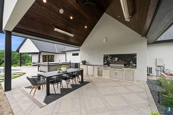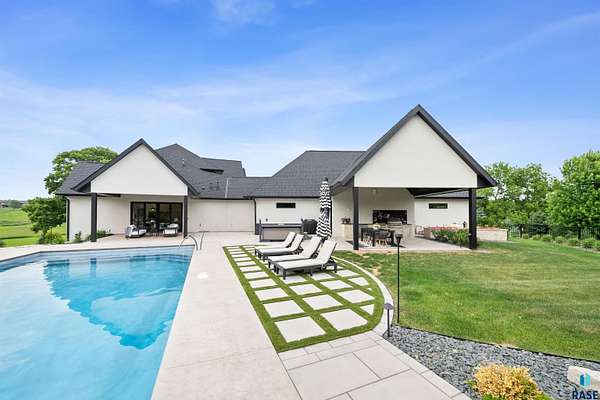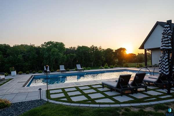 Tucked away on a peaceful 4-acre retreat, this exquisite two-story walkout estate is designed with exceptional detail, timeless style, and ultimate comfort in mind. Featuring 6 bedrooms, 7 bathrooms, and impressive indoor-outdoor amenities, this home is a rare blend of sophistication and everyday functionality. Step into the grand foyer, where soaring ceilings welcome you into a stunning great room with floor-to-ceiling windows overlooking your private sanctuary. Natural light fills the space, creating an effortless flow to the heart of the home - a chef's dream kitchen with top-of-the-line appliances, a spacious center island, a charming breakfast nook, and a large hidden walk-in pantry for ultimate organization and design appeal. Step outside to find a resort-style setting complete with an in-ground pool, hot tub, covered outdoor kitchen, and a dedicated outdoor bathroom perfectly suited for entertaining and relaxing after a swim. The main level is anchored by a luxurious primary suite featuring a spa-like bath and a walk-in closet, feeling like a high-end boutique. Two private office spaces on the main level and dual laundry rooms on the main and upper level. Upstairs, you'll find four spacious bedrooms and two full bathrooms. The walkout lower level is an entertainer's dream, showcasing a full wet bar, wine cellar, home gym, sauna, rec room/toy room, additional guest suite with full bath and abundant storage. Additional highlights include a whole-home audio system, beautifully landscaped grounds, and a separate detached garage with a core garage perfect for car collectors, hobbyists, or workshop needs. This one-of-a-kind estate backs up to the Mary Jo Wegner Arboretum and is the perfect balance of privacy, luxury, and livability.
