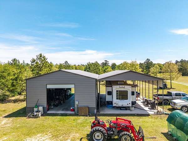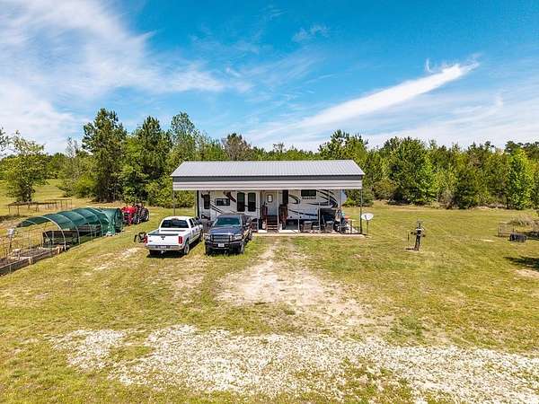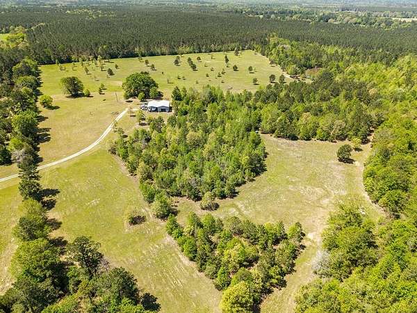 64.19 acres of prime East Texas farm & ranch land offering a great mix of wooded acreage and open pasture, ideal for recreation, hunting, or a future homesite. Property is partially barbed wire fenced and surrounded by large timber tracts, creating excellent habitat for abundant wildlife—deer, hogs, and more. Improvements include a well-prepared homesite with full RV hookups (water, septic, electricity) and satellite internet in place. A 30'x40' shop with roll-up doors provides ample storage and workspace. Additionally, there is a 28'x40' metal RV cover, both situated on a concrete slab. The property features a stocked pond with catfish, along with an established road and trail system throughout for easy access. Gravel driveway leads to the RV site. Ideal for a private weekend retreat, hunting property, or future homesite. Quiet location with excellent seclusion while still accessible. Shown by appointment only.