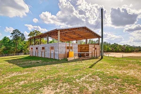 IMAGINE YOUR OWN DREAM FARM OR WEDDING VENUE 15 MINUTES FROM THE WORLD EQUESTRIAN CENTER....THIS 17.93 ACRE CURRENT HORSE FARM HAS THE ABILITY TO BE WHATEVER YOU DESIRE! CURRENTLY A WORKING HORSE FARM WITH MASSIVE 200 X 300 ARENA, 6 TO 8 STALL BARN, 2 LARGE PASTURES FOR TURNOUT AND 5 INDIVIDUAL PADDOCKS, PERIMETER FENCED, A COOP IN FOR THE CHICKENS, PRIVATE ENTRANCE TO BOTH HOME AND WORKSHOP.