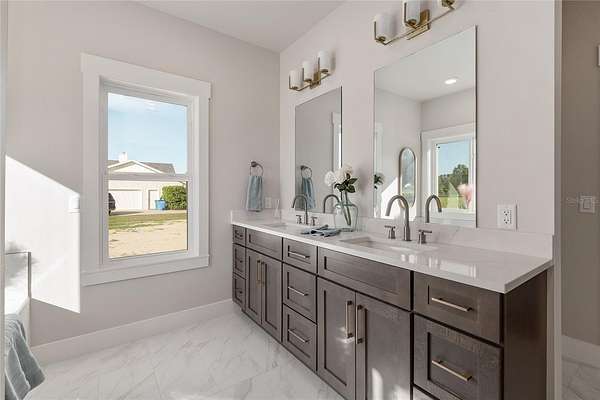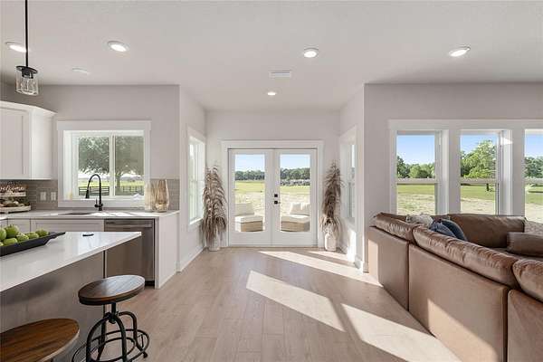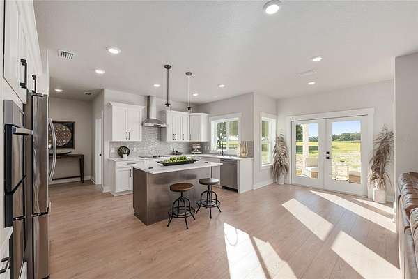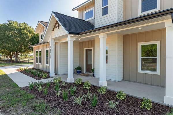 Professional photos coming soon. This model is apart of the 2026 Spring Parade of Homes. Coming April 2026 on a private 2.5-acre homesite in picturesque Tillman Acres, the Ashland by OLO Builders delivers 2,447 sq. ft. of bright, open-concept living with a soaring two-story foyer, 9-ft ceilings, and a side-entry 2-car garage. A window-lined great room flows to the chef’s kitchen with island, dining bump-out, walk-in pantry, wood cabinetry with soft-close drawers, granite countertops, built-in oven and microwave, electric cooktop, French-door refrigerator, and range hood—plus sliding doors to the open porch. Everyday conveniences include a drop-zone/mudroom, dedicated laundry, and a guest half bath. The main-level primary suite is wrapped in natural light and features a large walk-in closet and spa bath with separate tub and shower, private water closet, and double vanity. Upstairs, a loft/second living area serves three generous bedrooms, a full bath, and a storage closet housing the second heat pump. Thoughtful finishes emphasize comfort and efficiency: durable composite siding with weather wrap, blown-in insulation in exterior walls and ceiling, double-insulated grid-pattern windows, two HVAC systems with heat pumps, wood-laminate main floors, and finished landscaping. Minutes from Historic Downtown High Springs, the Santa Fe River, and the area’s famed springs—Ginnie, Poe, and Blue—this new build blends acreage, craftsmanship, and outdoor adventure in one exceptional address. All photos are representations of a completed home and do not represent the finishes, colors, and selections when completed.