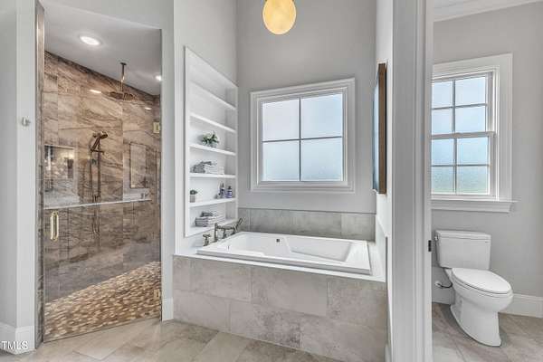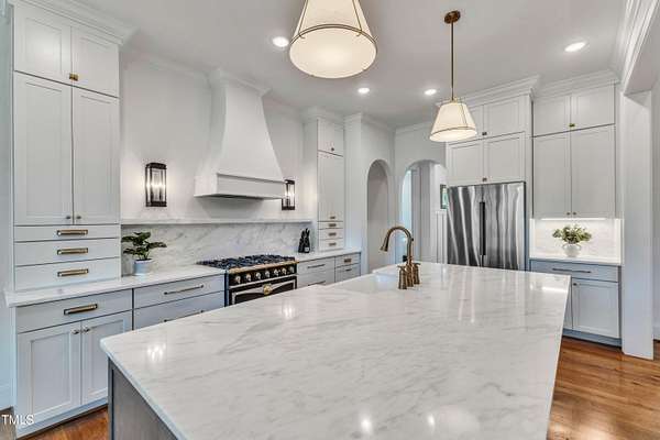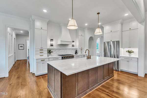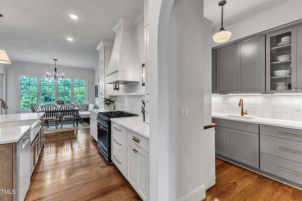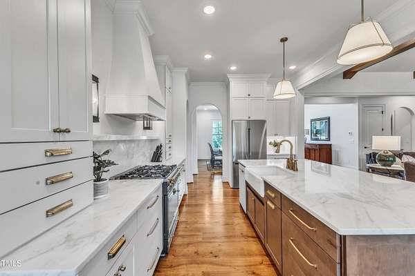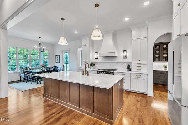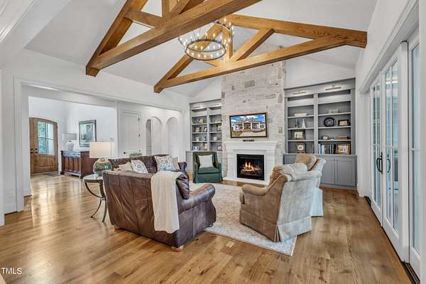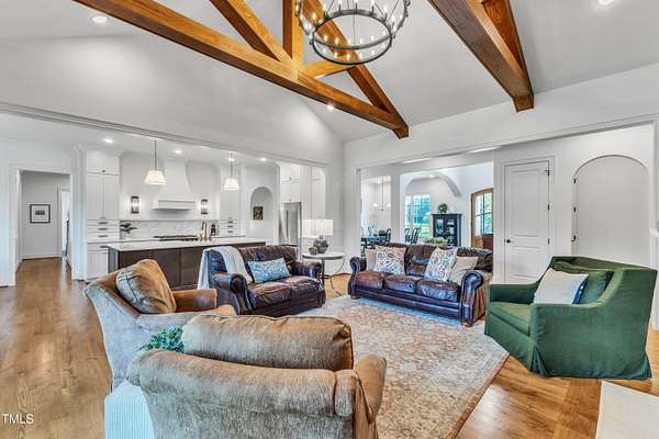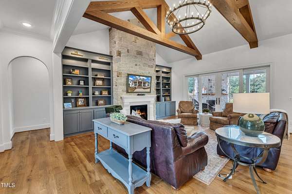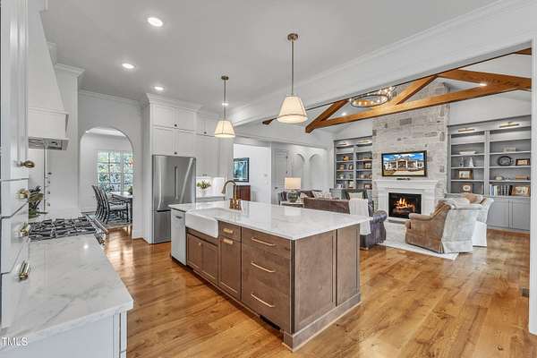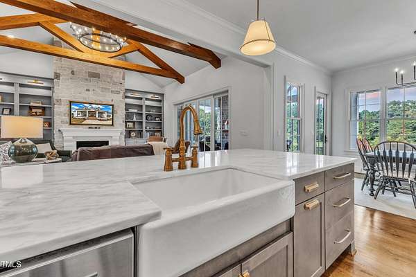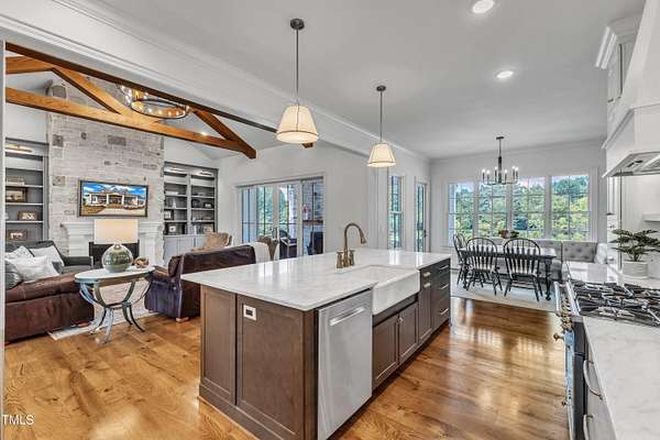 - Beamed Ceilings, Built-In Features, Kitchen Island, Open Floorplan, Primary Downstairs