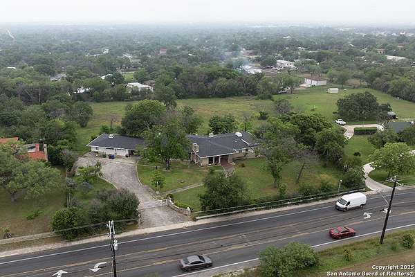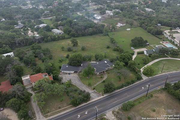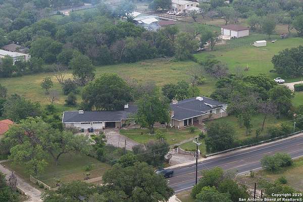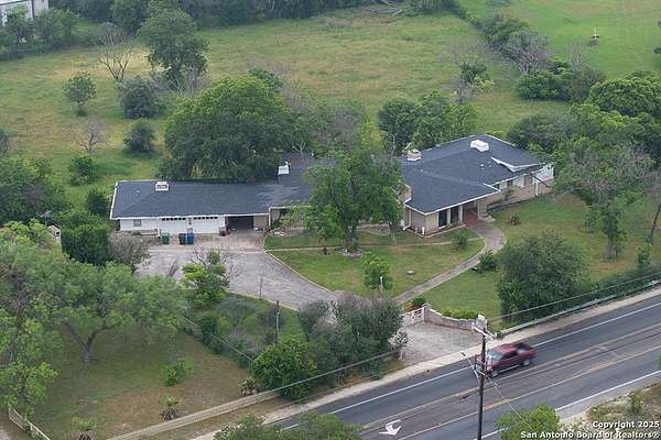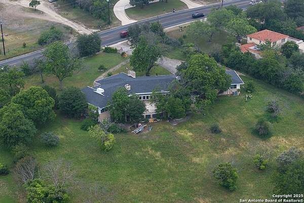 Est $5,744/moUnique, mid-century architecture home on huge lot overlooks downtown skyline! Custom built during the cold war to surprisingly reinforced structure underneath. Second primary suite sits in it's own wing near kitchen. Bedroom 2 off entry attached to primary bedroom though bath makes ideal office/nursery. Granite tops in kitchen and primary bath. Wood parquet flooring throughout. Large back patio with grill overlooks downtown San Antonio. Teen room/guest suite/maids quarters located behind garage with full bath! Incredible storage includes large pantry, big closets and walk out basement area beneath. Sitting on 2.74 acres with grafted pecan trees and gated entry.