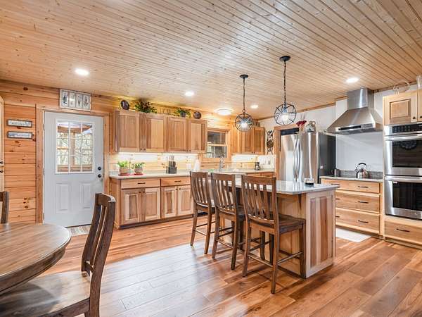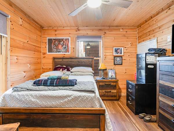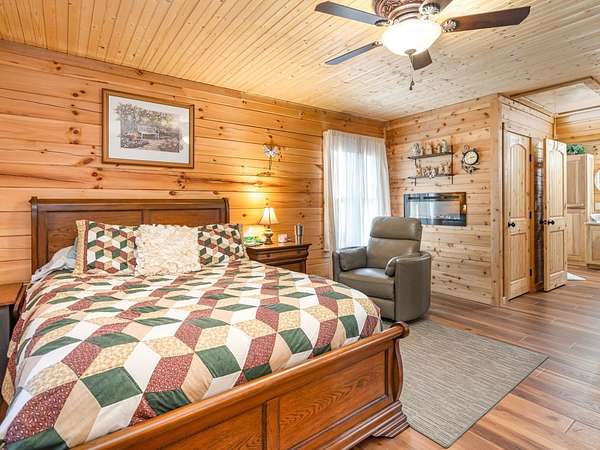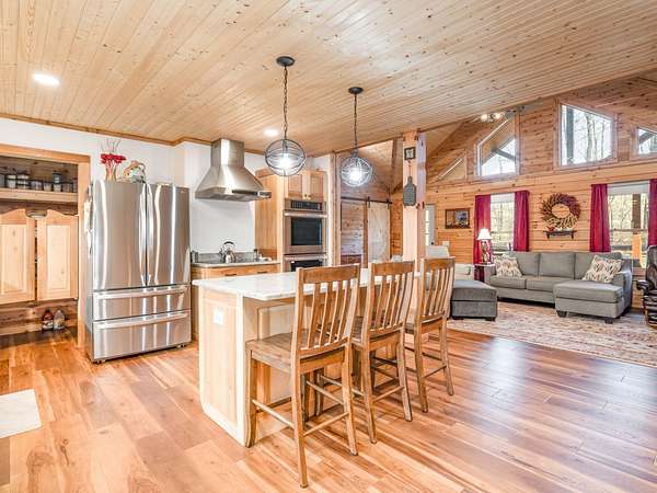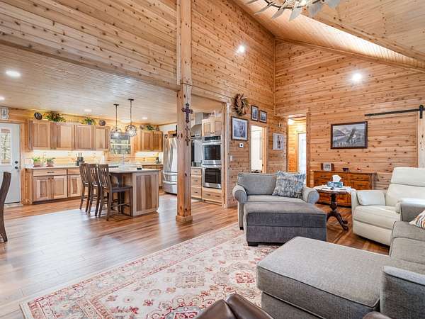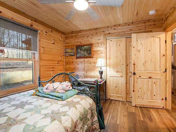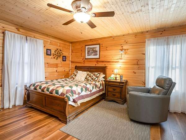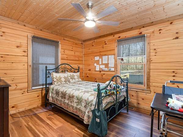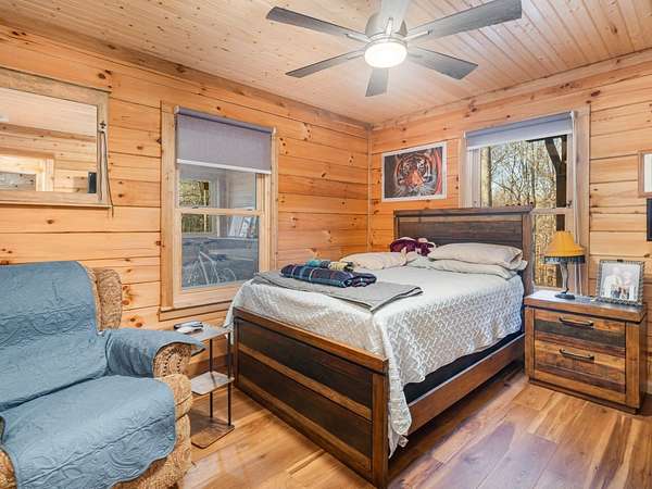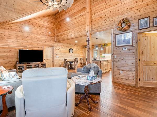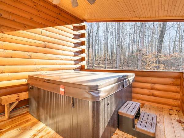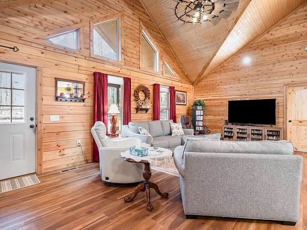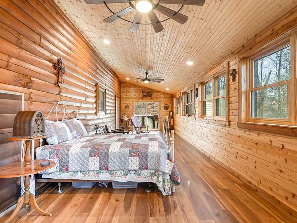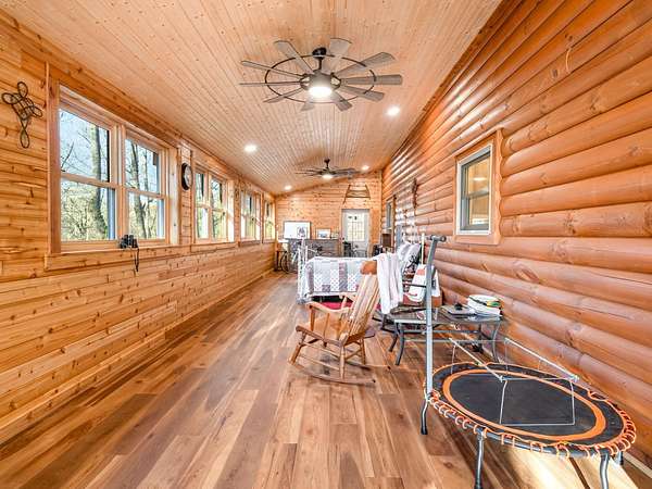 Welcome to your very own Mountain-inspired escape! This custom "true" log cabin home sets on 3+ acres combining rustic luxury with modern comfort. Home was built to last and is in great shape, with many upgrades providing for low utility bills and allergy control. Crafted with a rich combination of cedar and pine, the home provides natural warmth and character throughout every turn. You will be greeted by soaring vaulted ceilings and an expansive great room. The open floor plan flows seamlessly into a cook's kitchen featuring a double oven, 5 burner glass cooktop stove and an oversized island. A oversized flexible sunroom/flex space adds even more versatility, perfectly suited for a reading lounge, creative studio, home office, or your own person wellness space. Finished back porch adds 490+ sqft livable space. At days end, wind down in the jacuzzi overlooking the sunset! Perfect spot to unwind, take in nature and enjoy the beautiful sunsets Tennessee has to offer.