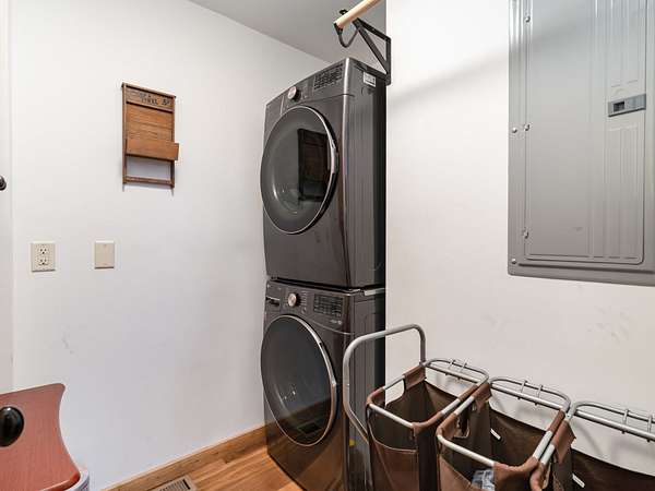 - Cooktop, Dishwasher, Double Oven, Dryer, Electric Oven, Electric Range, Refrigerator, Stainless Steel Appliance(s), Washer