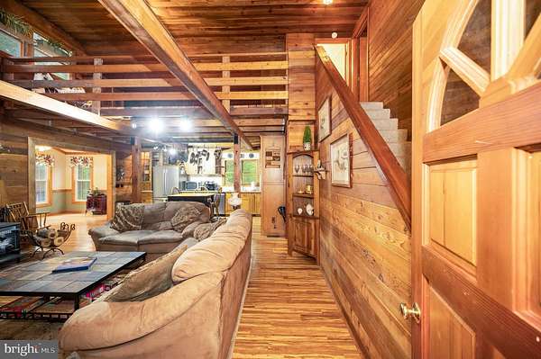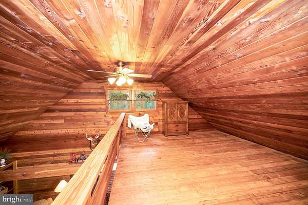 Welcome to your private hideaway! Nestled on nearly 9.5 acres of mostly wooded land, this cedar cabin is a hunter's dream and a nature lover's paradise. A long gravel driveway winds its way to the property, opening up to reveal a stunning 2.5-story cabin surrounded by thoughtfully designed outdoor living spaces. The outdoor areas are as inviting as the home itself. A shaded front deck, a side deck perfect for BBQs, and a rear deck wired and ready for a hot tub create endless opportunities to enjoy the fresh air. Between the home and detached garage, a charming courtyard sets the scene for quiet gatherings, while the lighted basketball court offers a place for evening games. A children's playground, a tranquil fish pond, and plenty of open yard space enhance the property's appeal. Two storage sheds and a dog pen sit tucked away in the back for added convenience. The detached oversized two-car garage provides more than just parking, with insulation, a dedicated power panel, and abundant storage. Attached to it, a climate-controlled man cave with its own private entrance and a pool table creates the perfect spot to unwind and entertain. Inside the cabin, rustic charm blends seamlessly with modern comfort. The great room features soaring ceilings, exposed wooden beams, a wood stove, built-ins, and expansive windows that connect you to the outdoors. The kitchen is spacious and beautifully updated with granite countertops, stainless steel appliances, lighted cabinetry, and a stone backsplash, while the formal dining area fills with natural light and offers peaceful views of the property. The main level includes two generously sized bedrooms and a full bathroom with a tile-surround tub and shower. Upstairs, an open loft makes an ideal office or reading nook and leads to the primary bedroom, which is accompanied by another full bathroom. On the lower level, a versatile flex space provides the option for a fourth bedroom or office, complemented by a large rec room perfectly suited for game nights or gatherings. A secure safe, a laundry and utility room, and a mudroom with direct access to the backyard complete the interior. Additional features include a generator that powers three-quarters of the home, scenic walking trails, plenty of space for ATV riding, and prime land for hunting. This property offers not just a home but an entire lifestyle, one that balances privacy, comfort, and adventure in a truly one-of-a-kind setting.