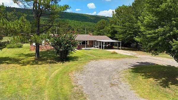 Set on 110+- acres at the base of Poteau Mountain, this property combines seclusion, function, and beautiful views. The 2,738 sq ft home offers 4 bedrooms, 2 full baths, an eat-in kitchen, and a formal dining room (or bonus space). An office with a built-in desk and shelving, plus a supply closet with built-ins, adds both charm and practicality.