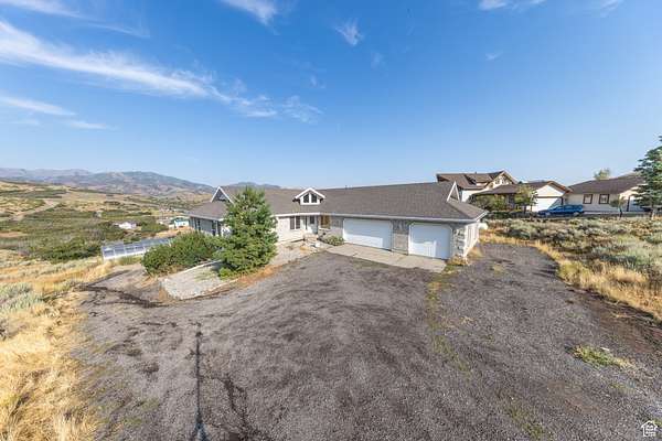 REDUCED PRICE! Escape to the quiet beauty of the Herriman foothills in this 3,800 sq. ft. rambler, perfectly situated on 2.5 acres of horse property just 2 miles up a scenic dirt road. Here, you'll enjoy peace, privacy, and an abundance of wildlife - all while being only 15 minutes from shopping, dining, and entertainment in Herriman and Riverton. This thoughtfully designed home features a spacious 3-car garage, kitchens and laundry rooms on both levels, and a daylight walkout basement with a full mother-in-law suite. The vaulted great room is the centerpiece of the main level, highlighted by a striking timber king post and exposed beams, with floor-to-ceiling windows framing sweeping views of rolling hills and mountains. From the main level, step out onto the expansive wrap-around balcony deck - complete with a bbq grill and gas hookup - it's the perfect spot for soaking in panoramic sunsets or the serene quiet of the foothills. Additional highlights include a tankless water heater, a large greenhouse in the backyard, and plenty of space for horses or other animals. Washer, dryer, and all kitchen appliances on both levels are included, making this home move-in ready. Enjoy clear skies above the winter inversions, unparalleled views, and the lifestyle you've been dreaming of in this unique Herriman retreat. This home appraised for $815,000. (see attached appraisal) ***FOR VIRTUAL TOUR AND DRONE TOUR - scroll up and click on 'Tours' First tour is virtual, second tour is drone video.