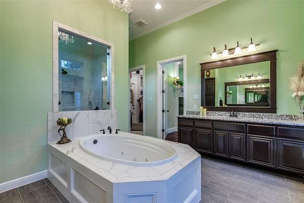 - Built-In Features, Cathedral Ceiling(s), Chandelier, Double Vanity, Eat-In Kitchen, Granite Counters, High Speed Internet Available, Kitchen Island, Walk-In Closet(s)