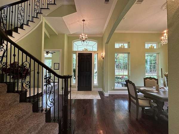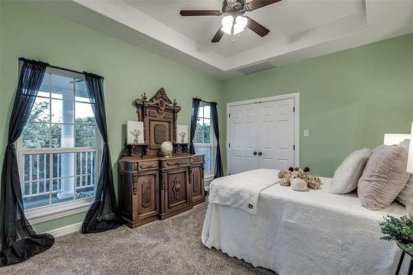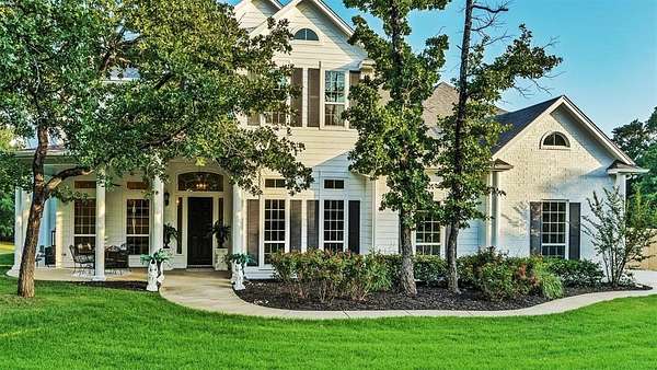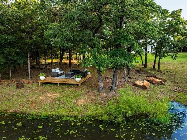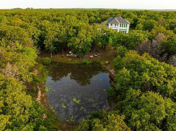 For those who enjoy PRIVACY. Nestled near the waters of Lake Ray Roberts, this 5 acre home is located in the highly desirable Mountain Springs area. It offers country-living with park-like interiors, heavily wooded exteriors, and seasonal lake views. With quick access to I35, this property is perfectly situated north of Denton, Frisco, Dallas, Ft Worth, and DFW Airport. It is also not far from Winstar Casino, the North Dallas Tollway and Central Expressway. It includes 12ft ceilings throughout the entire downstairs, Red Oak hand scraped hardwoods and motorized window shades. The living room has 22 ft ceilings, filled with natural light, 20 windows and a captivating, oversized fireplace. The kitchen is centered around a massive island with granite countertops. The cabinetry offers a balance between design, luxury, and function, along with an additional nook for meal planning and storage. The first-floor primary suite features a 2nd fireplace and a wall of windows overlooking the the pond and grounds. Continuing into the primary bathroom, there are literally views of the pond from inside the Jacuzzi tub and large walk-in shower! It also features oversized his and her vanities with direct access to the laundry room from the large primary closet. There is a 2nd room downstairs that can serve as a bedroom or office. The upstairs has an oversized garden tub, two spacious bedrooms, a flex room and a private balcony with seasonal lake views. Mature oak trees surround the front porch and back patio, creating a charming place to witness beautiful sunrises. In the evening, the deck and pond are a peaceful place to watch the day turn to night as the sun fades behind the trees. There is over 600 sqft of attic space and an oversized garage. No HOA. This property has the potential to become full lake view for the buyer with the right vision for a roof top patio. There is also plenty room for a luxury pool, building or shop. This house is a must see!