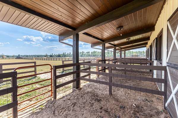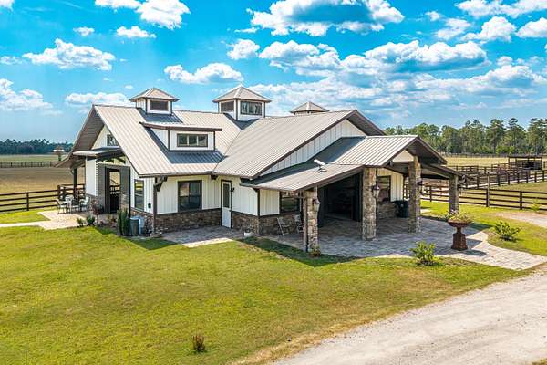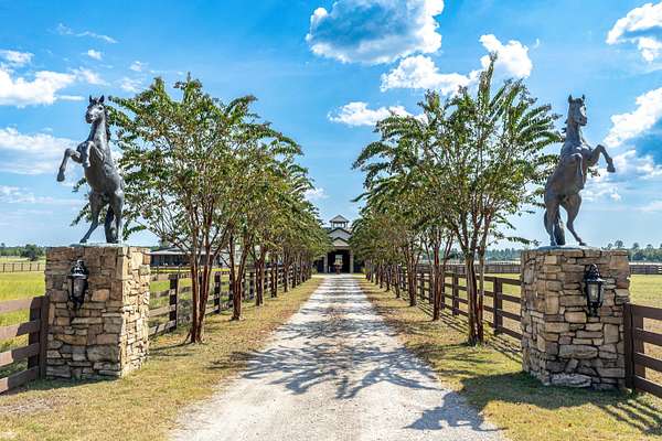 10.51 acres of Luxury Equestrian Living! Experience the perfect blend of modern luxury and country living at this fully renovated horse farm estate. With premium stable facilities, this property offers both refined living spaces and first-class equestrian amenities including 6 horse stalls. Inside the main house, you will find 4,500 sqft of a fully renovated home in 2024 including 5 bedrooms, 5.5 baths, new wood flooring, high accent ceilings, and an open concept great room at the entrance. The gourmet kitchen features custom wooden cabinetry, granite countertops, and stainless steel appliances, making it both stylish and highly functional. Two spacious living rooms and a second kitchen provide for plenty of room for entertaining. This home comes fully furnished for a move-in-ready experience. Beyond the home, the estate offers upgraded stables, fenced and well-manicured pastures, and a rear storage shed for added convenience. The stable facilities remain in excellent condition and are well suited for horse care, training, and boarding. This turn-key deluxe equestrian setup is a horse lover's dream with each of the six stalls including double-rotating fans, automatic watering bowls, anti-fly misting system, and a covered paddock. There is a beautiful guest quarters attached to the stables including a third kitchen, full bathroom, and bedroom. There is also a separate wash area and tack area. Whether you are an avid equestrian or want a slice of luxury countryside close to the beach, this property is for you! Please call/text Taylor Simpson and/or Brooke O'Keefe to set up a showing today!