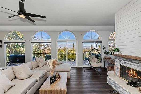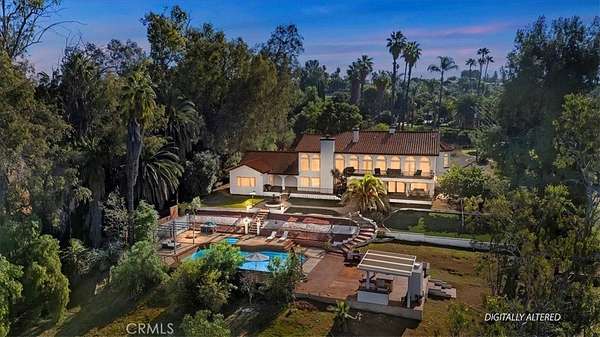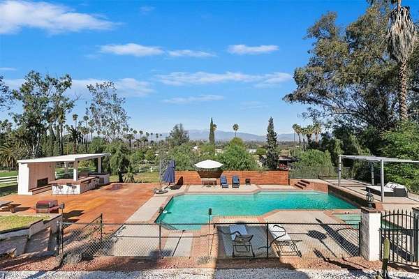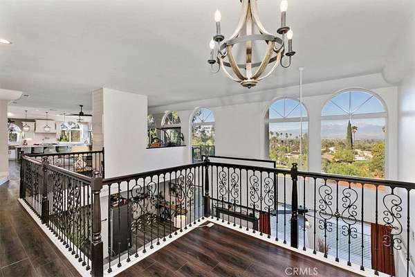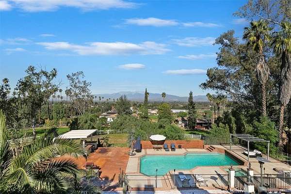 Exquisite Spanish Colonial Estate nestled in the heart of Arlington Heights tucked away for exceptional privacy this remarkable Estate overlooks the City of Riverside, offering breathtaking views & City lights. Set on 3.77 acres of private fenced and gated grounds, this is a rare estate property showcasing expansive open land. Circular driveway w/pavers leads to the residence enhancing its grand yet secluded presence. Spanning 4,667 square feet the home features 5 bedrooms and 3.5 bathrooms, including two primary suites thoughtfully designed for comfort and multigenerational living. Architectural elegance is evident throughout with arched walkways. Expansive windows in every direction that flood the home with natural light and capture sweeping views. Completely updated and remodeled, offering large porcelain tile and plank wood flooring throughout. Formal living and dining rooms provide entertaining spaces while the heart of the home is the gourmet kitchen, open to the family room with a wood-burning fireplace. The kitchen features an expansive center island, quartz countertops, stainless steel appliances, pot filler, professional-series range with double convection ovens, built-in 60-inch refrigerator, and a large walk-in pantry. Sliding glass doors open to the back patio creating an indoor-outdoor living experience and extending the interior living space. A private upstairs office offers a quiet retreat for work or study. Downstairs, all five generously sized bedrooms are thoughtfully located. The primary suite is its own private wing, double doors with a private office. Wood-burning fireplace, dream walk-in closet and a luxurious ensuite bathroom featuring dual sinks, a freestanding soaking tub, and a separate shower enclosure. French doors lead directly to the private back patio enhancing the resort-like feel. Also on the lower level is a second living room with its own wood-burning fireplace, three additional guest bedrooms, and a second primary suite, perfect for extended family. The outdoor space is a true private oasis, featuring a pool and spa, a private outdoor kitchen, and expansive patio areas ideal for entertaining or relaxing.The property has a detached three-car garage. Conveniently located close to fwys. top-rated schools, and Victoria Country Club. This exceptional estate offers timeless Spanish Colonial charm, modern luxury, privacy, and unparalleled lifestyle living in one of Riverside’s most sought-after neighborhoods.