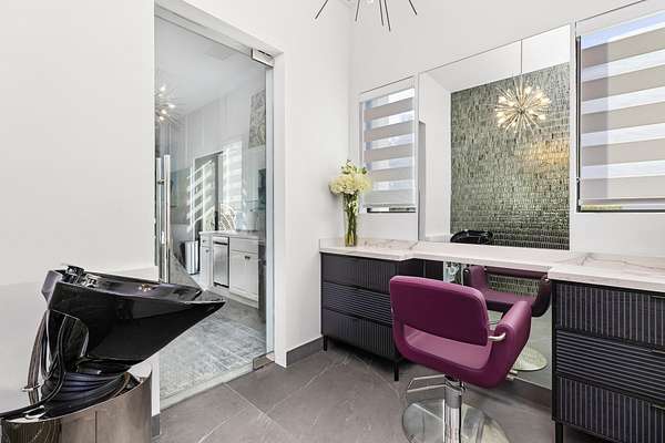 - Built-In Grill, Covered Patio, Custom Lighting, Fence, Outdoor Shower, Private Pool, Summer Kitchen