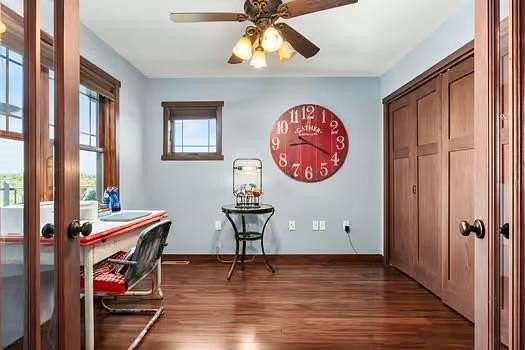 Exceptional 5-Bedroom Home on 92 Acres - Featuring Comfort & Recreation Spacious and versatile, this 5-bedroom, 3.5-bath home features a main-level office with a closet and egress window--easily used as a 6th bedroom. Enjoy three large recreational areas, one on each level, plus bamboo and hardwood flooring throughout. The walk-out basement boasts sealed concrete floors with in-floor heat. The luxurious primary suite offers two walk-in closets, double vanities, a soaking tub, and a tiled walk-in shower with dual shower heads. A loft overlooks the main living space and captures stunning views of the property. Abundant storage throughout. Outdoors: 35 acres in MFL, known for trophy whitetails, plus a 36x63 shed with concrete floors, 17' sidewalls, 14' overhead door, and 12x63 lean-to.