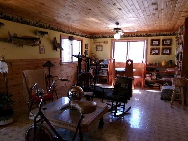 This is a classic Sissabagama lake home, not the normal boring home one of a kind homes. Once was a Bed and Breakfast home, now a perfect residential home. All done in the Northwoods decor, with knotty pine interior cathedral ceiling living room all facing the lake with dock. Decks on three sides, a three season room, country kitchen two bedroom , two bathrooms on main floor, but there's more, a recreation room and two bedroom with baths in the lower area , and the upper area has two bedrooms with baths. Two fireplaces, and a sauna, 3 area of wooded land deeded waterfront and a separate two car garage/ with loft and a separate 40X 26 storage building for the recreation toys, includes in floor heat, a utility room with washer and dryer, No this isn't another million dollar home as the owner is willing to sell it for only $499,000 make offer
