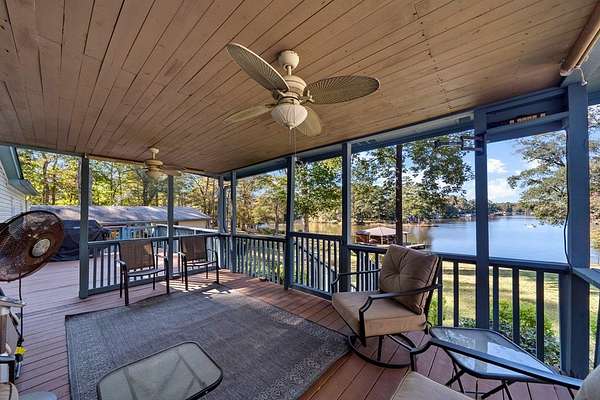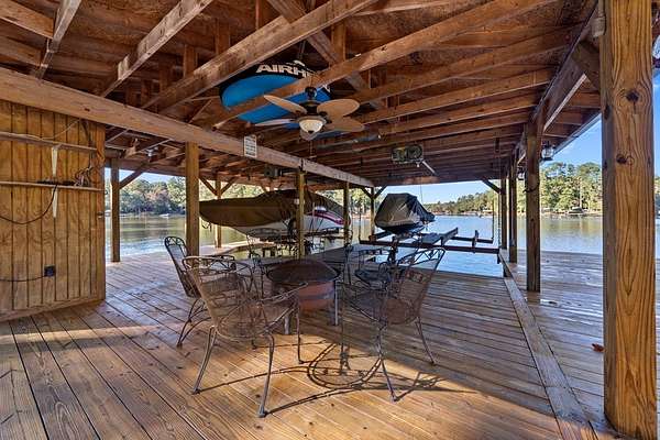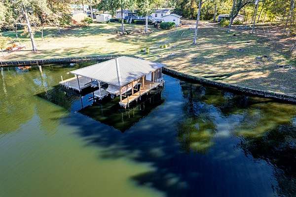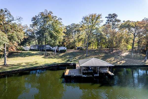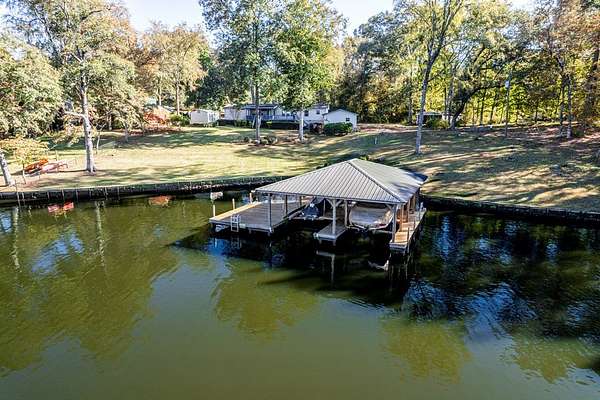 Your new home is waiting for you on Lake Sinclair. Lots of room and privacy for your family and friends with four bedrooms and 2 baths. Master suite has an adjoining room ideal for sitting room, office, exercise room or even additional sleeping area. Three additional bedrooms and bath are on the opposite end of the house. There is a large dining room and living room combo with fireplace. The open kitchen and den offer great views of the lake. Even better views are found on the large deck that is covered on one side and open on the other. The lakeside has a large, beautiful yard with an inground sprinkler system and 167 ft of waterfront with a sea wall and a max dock with a double boat house with boat lifts and a large storage room for all your lake toys. There is also a shower on the dock. More outdoor storage will be found in the 10x20 utility building and even more in the 8x20 enclosed area of the 2-car carport. Ready for you to begin your lake life.