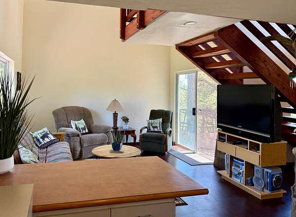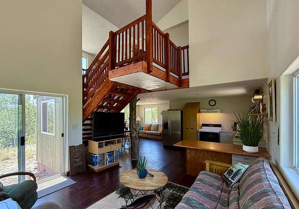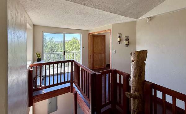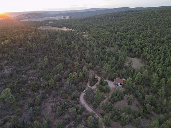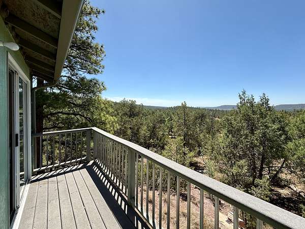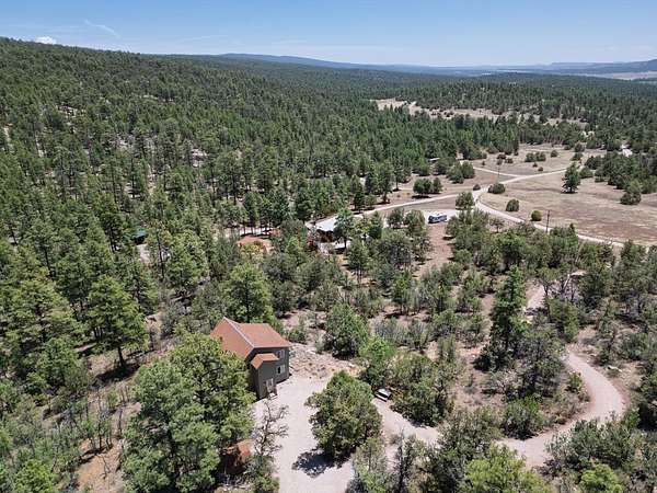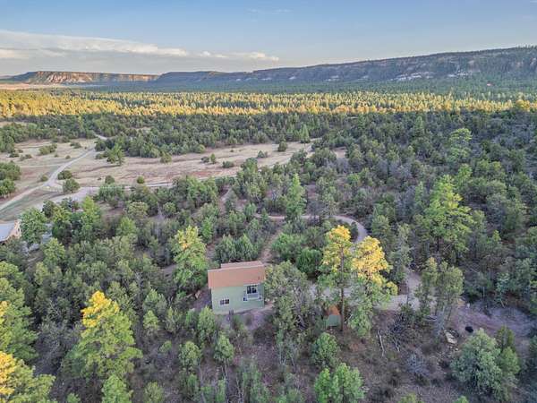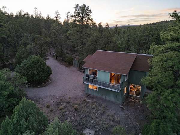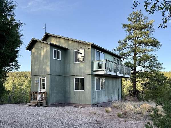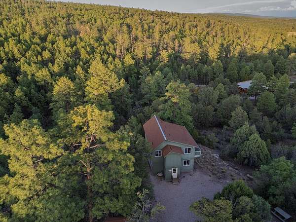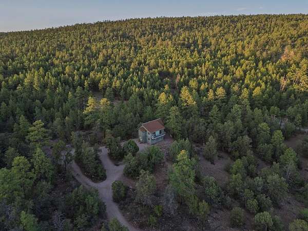 Rustic comfort, incredible balcony views and Cibola National Forest right across the rear property line! This charming 1050sf mountain getaway with a great well sits on 5.5 heavily wooded acres at the end of a long, curving driveway. Practically invisible from the road, this house is a hidden haven, with an open and airy vaulted living area and roomy kitchen and dining spaces. Upstairs, a large balcony runs the entire length of the south side of the house for stunning views of the forest, the distant cliffs of Ramah Lake, and the Zuni mountains beyond. The north balcony looks out to the wilderness of Cibola National Forest. Roads are maintained year-round, HOA only $230/year, private Ramah lake access. Trade hot pavement for pine needles, crisp clean air, and cool starry nights.