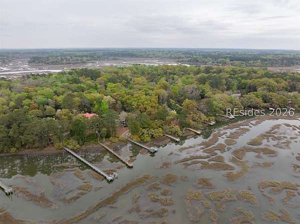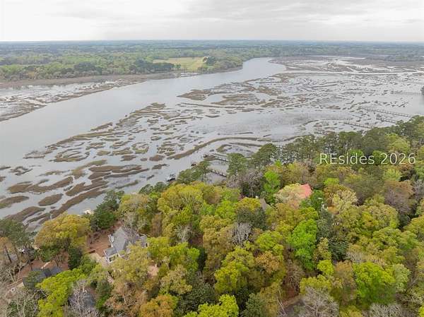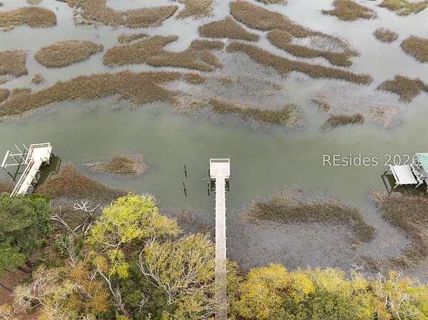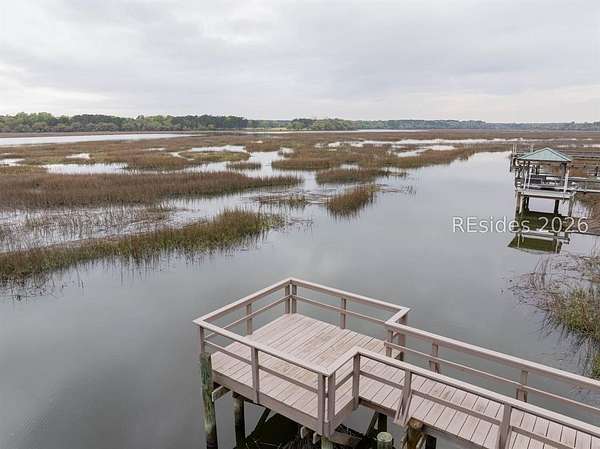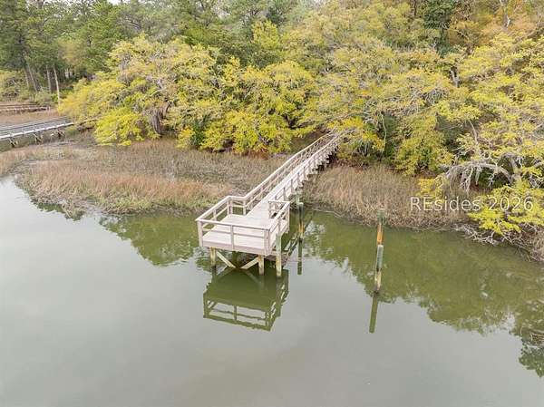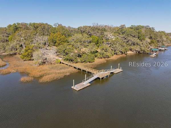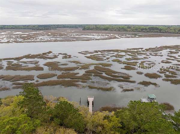One of the last remaining premier waterfront Homesites in the highly coveted community of Bull Point. Perched atop a high bluff, the Western exposure offers sweeping sunset views of Huspah Creek that are what dreams are made of. This highly elevated homesite has a deep building envelope with towering native trees, providing a near Bird's eye view of the intertwining channels. A concise well appointed dock can also be found with pilings for a boat lift on this tidal creek waterway that is a mere stones throw away from Deep Water access. Your canvas is ready to make your mark & build your Lowcountry paradise. With no timeframe to build, immerse yourself in the Lowcountry. Amenities include fresh water lakes, pickleball & tennis, clubhouse, pool, deep water docks, boat storage, leisure trails and gate.
