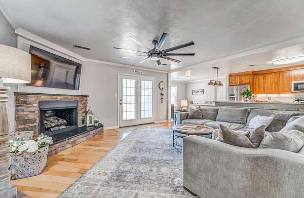 Stunning home nestled on 5.81 picturesque acres (2 parcels), offering the perfect blend of luxury & functionality. This exceptional property is fully equipped for country living & entertaining alike. Equestrian-ready w/3-stall horse barn featuring a tack rm, electricity, & water. 22x36 hay barn provides ample storage, including space for a tractor, & there’s a separate shop for additional workspace. 30x40 heated & cooled shop boasts brand-new epoxy floors. Enjoy peaceful views of the pond w/its new dock, while security cameras provide added peace of mind. Inside, the home showcases granite thru-out & includes all appl. 5 spacious bedrms & 5 full baths, there’s rm for everyone. 5th bedrm up features a private ensuite, perfect for a teen suite. Large bonus rm includes a pool table that remains w/the home. Additional highlights include a 21x12 in-home gym, a dedicated office w/built-ins, large safe in the downstairs closet stays, 6-car garage heated & cooled. Also, RV parking & hookup!!