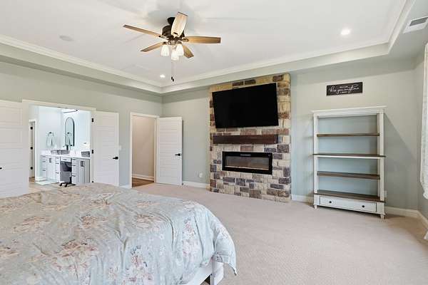RARE OPPORTUNITY to live in one of Georgetown's most in-demand neighborhoods! This 2021 custom build was purchased in April 2025 and since then, almost every part of the home has been thoughtfully upgraded. This was to be the owners' forever home, so they spared no expense. From your first step through the front doors, you'll find Villa Bocelli French Oak hardwood flooring, fresh whole-home interior paint, custom stone fireplace surrounds, updated ceiling fans, and elegant wall sconces. The kitchen has been transformed with new granite countertops, tile backsplash, freshly painted cabinetry, a Kohler sink, Delta faucet, pot filler, and reinstalled hood for a clean, finished look - not to mention the gas range, built-in microwave, and wine cooler. Additional improvements include a radon mitigation system, whole-home window tinting, pocket door installation connecting the bonus room to an upstairs bathroom, and both the main-level and upstairs primary suites feature new custom closet systems. Outdoor living has been reimagined with a fully rebuilt upstairs deck and roof overhang, an enhanced downstairs patio grill area with granite countertops and a mini fridge, and a full exterior fence surrounding the 1.998-acre lot. Landscaping was no exception - fresh front beds, new mulch, and 37 newly planted trees and bushes including Crepe Myrtles, Arborvitae, and additional varieties that will continue to mature beautifully over time. This was not a quick cosmetic update - it was a thoughtfully improved home designed for long-term enjoyment. The sellers relocated here from a remote setting and, while they truly love this home and the upgrades they've made, have realized they're meant to live remote. They genuinely wish they could take it with them, which means the next owner benefits from extensive improvements without the time, cost, or inconvenience of completing them.
