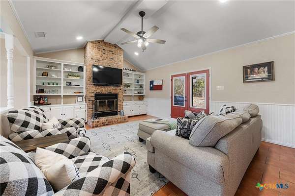 Come check out this beautiful brick 3-bedroom, 2-bathroom home situated on approximately 4.54 acres, tucked away at the end of a quiet cul-de-sac in a quaint neighborhood. This property offers privacy, space, and versatility, complete with a detached workshop featuring spray foam insulation, power, and water-perfect for hobbies, storage, or endless possibilities. Inside, you'll find a spacious living room with a beamed ceiling, wood-burning fireplace, and built-in bookcase and storage, creating a warm and inviting atmosphere. A separate formal dining room sits at the front of the home, along with an additional dining area off the kitchen, ideal for both everyday living and entertaining. The kitchen is designed for functionality and space, offering double ovens, a built-in electric cooktop, vent hood, and ample room to meet all your culinary needs. The primary bedroom is generously sized and features an ensuite bathroom with dual vanities, a separate jetted tub, and a walk-in shower. With its peaceful setting, acreage, and impressive workshop, this property is a rare find. Schedule your private showing today!