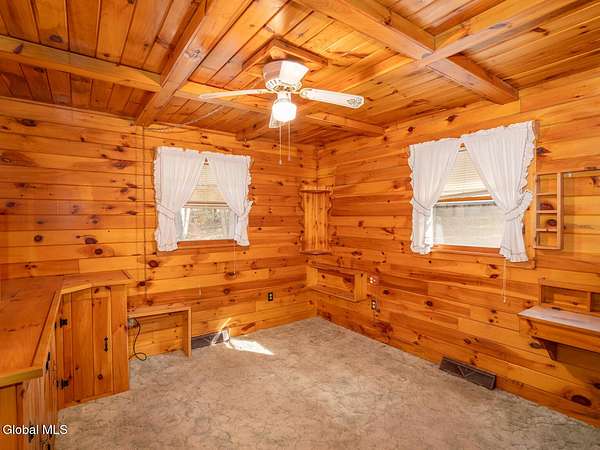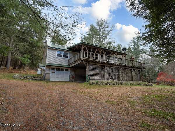 MULTIPLE OFFERS RECEIVED. ALL OFFERS DUE BY 11/16 @ 8;00PM. Here's your chance to own this unique property in Nassau. Sitting on 2.11 acres, this cape cod has beautiful knotty pine throughout the house, creating a cozy ambiance. The pellet stove will keep you warm this winter and the large wrap around deck provides great views of the property. Both bedrooms are on the main level, and upstairs is a large bonus space, creating opportunity for an additional bedroom or office space. 1 car garage, plus a carport and nicely sized outbuilding that could make a great workshop. Schedule your showing today!