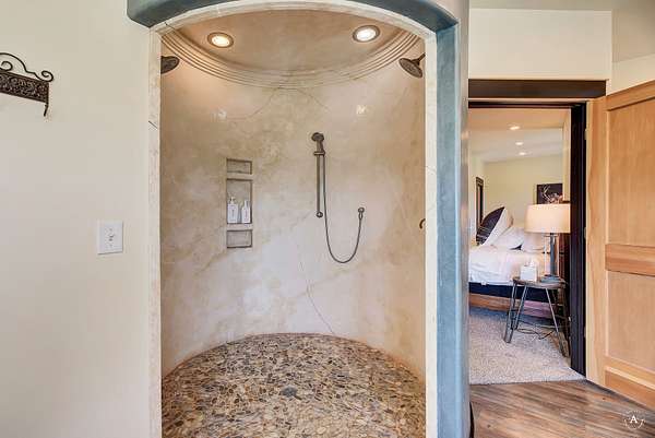 - Central Vacuum, Fireplace, Main Level Primary, Sauna, Vaulted Ceilings, Walk In Closets