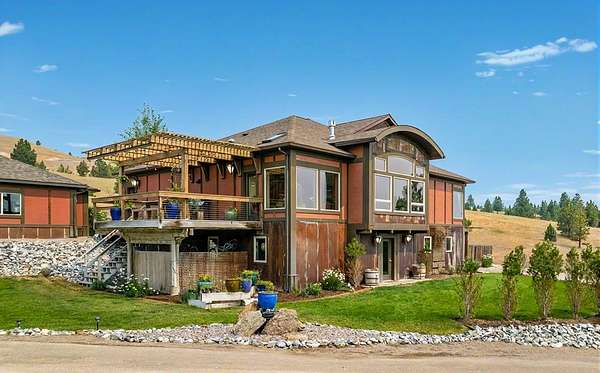 A rare opportunity to secure luxury Montana living at outstanding value. Welcome to 162 Jackson Creek Road-an artfully crafted 4,677 sq ft modern farmhouse designed as the private residence of a master builder. The main suite offers a spa bath, sauna balcony, office, and oversized closet. Enjoy grand vaulted ceilings, triple-pane wood windows, a waterfall island, and a sunroom wrapped in mosaic tile. A private guest apartment includes its own kitchenette, living room, and bath. Downstairs features 4 bedrooms, a living area, and a spa-inspired bathroom. Outside, take in breathtaking mountain views from multiple decks, patios, and three landscaped yard areas, plus a fenced garden. The detached 3-car garage includes a gym and recording studio. Set on a quiet stretch of Jackson Creek yet minutes from Helena and just 9-12 minutes from the hospital, this estate offers the perfect blend of privacy, luxury, and convenience. Welcome to a property where timeless craftsmanship meets modern Montana living. Thoughtfully designed as the personal residence of a master builder, this home showcases luxury at every turn-from custom cabinetry and artisan stonework to premium finishes that elevate each room. Outdoor living is seamlessly integrated into the design. Multiple patios, decks, a pergola-covered sitting area, and a private sauna balcony frame panoramic mountain views and create serene spaces for morning coffee or evening unwinding. Three landscaped yard areas offer room for entertaining, relaxation, and gardening, including a fully fenced garden plot ideal for cultivating your own produce. Private hiking access (as permitted by the neighboring landowner) allows you to explore the surrounding landscape right from your doorstep. Inside, the home's layout provides exceptional flexibility. The main suite features a spa-inspired bathroom, large walk-in closet, dedicated office space, and balcony with sauna. Triple-pane wood-framed windows, soaring vaulted ceilings, and a waterfall island create a warm yet elevated living environment. A sunroom wrapped in mosaic tile provides a tranquil spot year-round. The lower level includes four bedrooms (not full closets they are nooks with shelving and built in desk), an additional living area, and a spa-like bathroom, giving ample space for larger households or guests. A fully finished loft provides even more optional living, studio, or hobby space. The private guest apartment-with its own kitchenette, living room, bedroom, and bath-offers ideal accommodations for visitors, long-term stays, multigenerational living, or short-term hosting opportunities. The detached three-car garage is more than storage: it includes a dedicated gym and a recording studio, adding unique functionality rarely found in Montana luxury homes. The property is equipped with a geothermal heating system and triple-pane windows for impressive thermal efficiency. High-speed fiber internet (up to 1700 Mbps) ensures seamless connectivity for remote work, streaming, or digital-creative pursuits. Secluded yet only about 12 minutes from Helena's amenities-and 9-12 minutes from the hospital and emergency services-this estate offers a rare combination of privacy, beauty, craftsmanship, and convenience. For those seeking a modern Montana retreat built with integrity and designed to elevate daily living, 162 Jackson Creek Road stands in a class of its own.