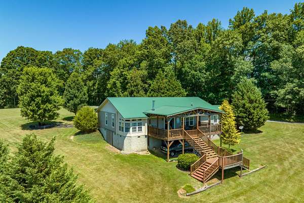 Come take a look at this wonderful, custom built home sitting on four plus acres with Mountain Views, easy access off of county maintained road, adjacent to the Cherokee National Forrest, and less than 1/2 mile to the public use Boat Ramp that is located on National Forrest Land!! This home features four bedrooms with three full baths, 2 x 6 construction, designed to withstand very high winds (built throughout Florida). Open floor plan, with 10'' ceilings, gracious master bedroom set apart from other bedrooms for privacy, electric fireplace in master with wrap around windows for viewing, elegant master bathroom, living area and kitchen designed for entertaining if you desire! Fireplace in main living area is currently converted to electric fireplace, can be switched back to wood burning if buyers decide to. The bonus room is currently serving as an office, fantastic covered decks on front and rear of home covering over 1,000 sq.ft. Metal roof is three years old, huge 725 sq.ft. attached garage, professional landscaping, The private well produces an unheard of 60 Gallons per Minute stand up basement, dry, currently serving as access underneath, equipment storage, could be converted to any number of opportunities!, FURNITURE CONVEYS, bring your toothbrush and move in!!!