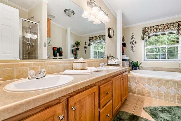 - Built-In Features, Cedar Closet(s), Garden Tub, Kitchen Island, Open Floorplan, Pantry, Soaking Tub, Solid Surface Counters, Walk-In Closet(s)