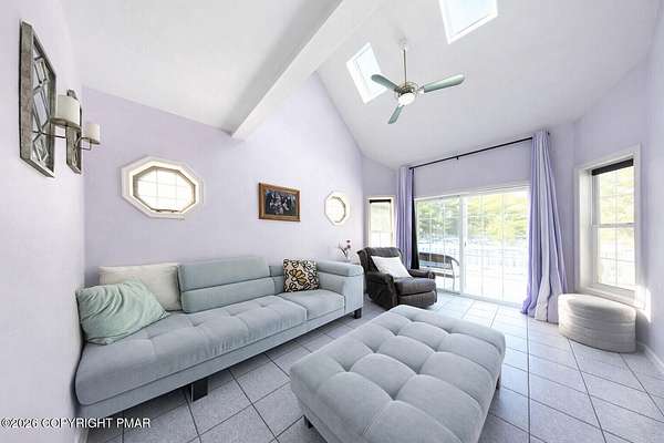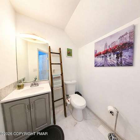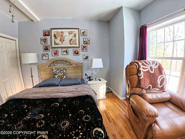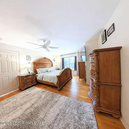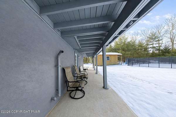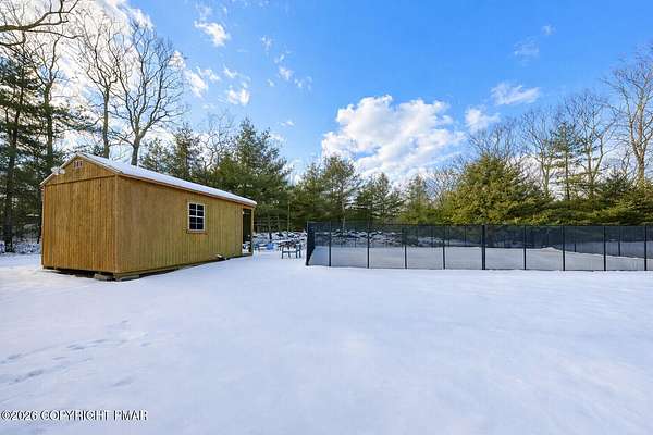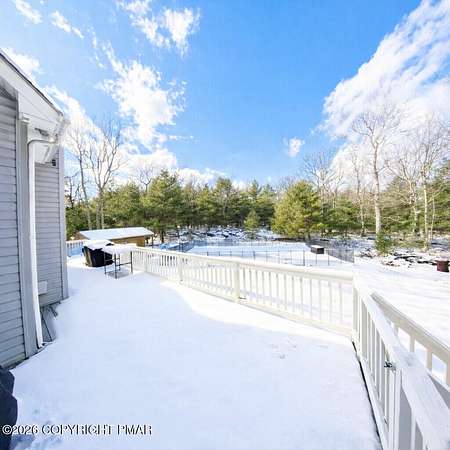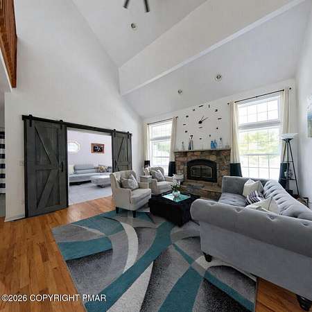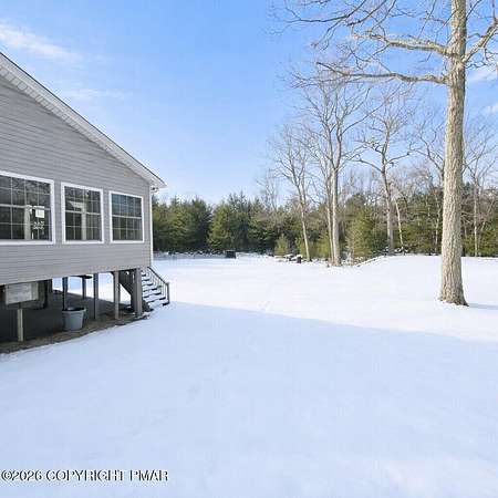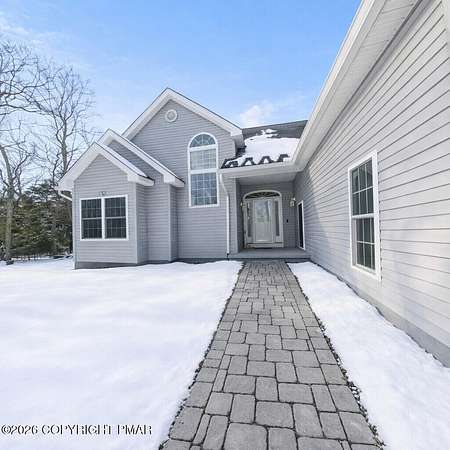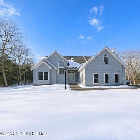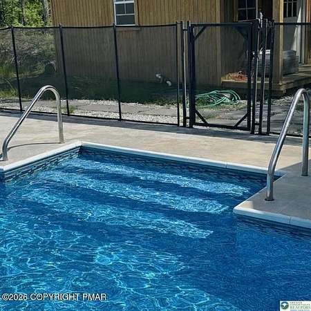 PRIVATE HILLTOP SANCTUARY. Located in Dingman Township, this secluded contemporary home is set atop 2.35 acres, offering exceptional privacy, peaceful surroundings, and thoughtfully designed living spaces across all three levels. The first floor features beautiful hardwood flooring throughout, a flexible spa/multi-purpose room, a bedroom with an attached full bath including a tub, and a kitchen with tile flooring, cherry wood cabinetry, an electric wall oven, and gas stove. Enjoy the inviting living room with a wood-burning fireplace, a bright four-season room for year-round enjoyment, and a convenient mudroom with direct access to the garage. The second floor offers a guest bedroom with an adjacent half bath, along with a spacious primary suite featuring a full en-suite bathroom, walk-in closet, and an additional storage room-ideal for a second walk-in closet, office, or private sitting area. The fully finished basement expands the living space with heated floors, a large full bathroom with walk-in shower, laundry area with a chute from top to bottom, and ample storage including a closet under the stairs. Recent updates include re-insulated attic space, re-sealed windows, and replacement of the pool liner and pumps-all completed approximately three years ago. Additional features include a smart saltwater pool, outdoor shower, whole-house water filtration system, and a generator capable of powering the entire home.