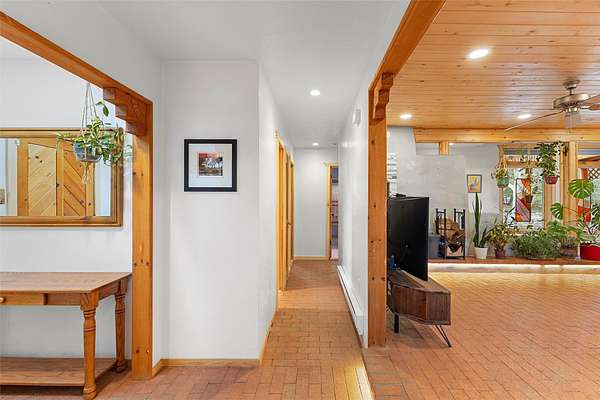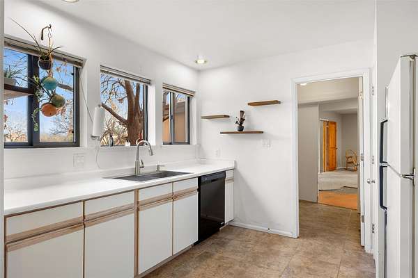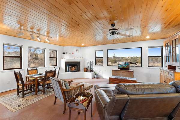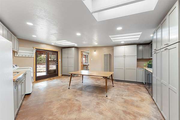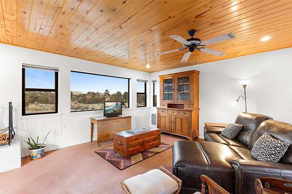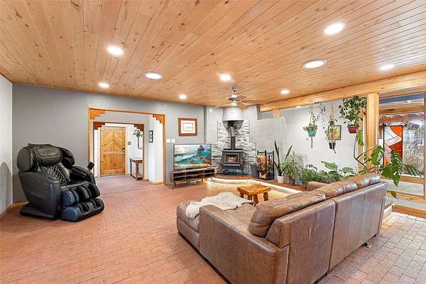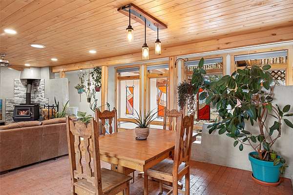 Rarely do you find a property that offers both expansive acreage and versatile living in the heart of White Rock. This extraordinary 2.2-acre La Senda estate features a spacious 4,260 sq. ft. footprint (total) including a main residence and a fully equipped guest house-perfect for a high-demand rental unit or a private multi-generational suite. The main home welcomes you with an updated chef's kitchen (2019) boasting quartz countertops, soft-close cabinetry, and modern appliances. Warm brick and wood-laminate flooring lead to a sun-drenched living area where a wood-burning stove creates a cozy mountain ambiance. Beyond the living space, a massive recreation room with its own fireplace and bath offers endless possibilities. For the hobbyist or professional, the crown jewel of the property is the 2,000 sq. ft. insulated shop with a roll-up door-large enough for a fleet of vehicles, a professional studio, or a world-class workshop. Complete with solar water heating and private carports for both dwellings, this is a rural sanctuary with modern efficiency.