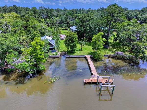 Discover an extraordinary opportunity to own a riverfront retreat on the breathtaking Intercoastal Waterway, prouldly located on the Great Loop. This property offers seamless access to the Apalachicola River,the Apalachicola Bay and the Gulf, presenting endless possibilities to explore and enjoy. Encompassing 2.26 acres along the serene riverbank, this expansive lot grants you abundant space to indulge in every aspect of your riverfront paradise. The lot has beautiful trees, oaks, cypress and palm trees. The ponds on the property are stocked with fish for you to enjoy catching. The home with its open concept living and expansive porches are ideal for effortless entertaining. The oversized garage serves as a sanctuary for vehicles and boats, safeguarding them from the elements. It provides amble storage for all your fishing and boating gear, ensuring everything is organized. The charming boat house, which includes a cozy living room and a bathroom doubles as a guest house, offering comfort and convenience for visitors. For avid anglers, this location is a haven teeming with a diverse and bountiful fish population that beckons for unforgettable fishing adventures. Unleash your adventurous spirit with a kayak launch, allowing you to effortlessly embrace the river and the natural wonders it holds. Paired with a dock and a convenient boat lift, your boating experiences become seamless and enjoyable. The home and boat house also features a well equipped with a water softener and filtration system, ensuring crystal-clear water at your fingertips. Picture yourself waking each morning to savor your coffee on the dock as the sun rises over the tranquil waters. It's more than just a property; it's a lifestyle waiting to be embraced. The property next door MLS # 324741 is being offered by the same owner. Buy both properties and have 191 feet of river frontage and 3.52 acres which is unheard of. Come visit today and let the charm of this riverfront escape captivate your heart.