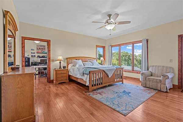 - Bath In Primary Bedroom, Bookcases, Built In Features, Cable Tv, Cathedral Ceilings, Ceiling Fans, Dressing Area, Dual Sinks, Elevator, Entrance Foyer, Fireplace, Granite Counters, High Ceilings, In Law Floorplan, Main Level Primary, Multiple Primary Suites, Shower Only, Smooth Ceilings, Walk In Closets, Walk In Shower, Window Treatments