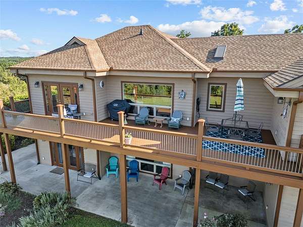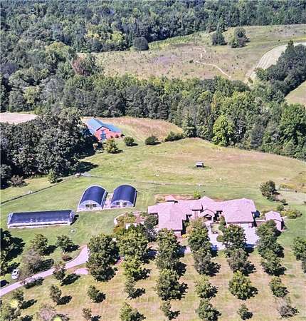 Discover a rare multi-generational property with sweeping views of Table Rock and the Blue Ridge Mountains. Nestled on 24 unrestricted acres, this remarkable estate offers both privacy and functionality with abundant outdoor space, income-producing potential, and two distinct living areas under one roof. The property features 7+ acres (of 24 acres) fenced pasture with livestock automatic waterers, a barn, three hoop houses, over 275 pecan trees (with irrigation) and a variety of fruit trees-perfect for hobby farming or sustainable living. Inside, the main residence welcomes you with a two story custom library, an open-concept design living area with a cozy fireplace, and a beautifully equipped kitchen at the heart of the home. The spacious primary suite is conveniently located on the main floor and includes an office, ensuite bath, and walk-in closet. Two additional large bedrooms, laundry/mud room, two car garage, a full bath, and a half bath complete this side of the home. The guest wing offers its own private living space with a comfortable living room, fireplace, kitchen, dining area, office/bunk room, and half bath on the main level. Head down to the lower level via the elevator or the stairs and you'll find a generously sized bedroom with a his-and-hers closet, sitting area, full bath, laundry room and a 2 car garage-perfect for extended family, guests, or rental opportunities. Multiple outdoor living spaces, including ground-level patios and upper-level decks, take full advantage of the panoramic mountain views and peaceful surroundings. Whether you're searching for a true multi-generational home, a private mountain retreat, or a property with agricultural and recreational opportunities, this one-of-a-kind estate checks every box. *New Roof and fresh exterior stain** *shown by appointment only*