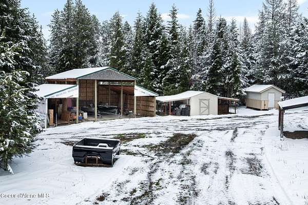 Tucked away on nearly 10 private acres, this 2,878 sq ft home in Blanchard offers an exceptional blend of seclusion, flexibility, and usable space. Set well back from the road and surrounded by mature trees, the property provides true privacy and direct access to hundreds of acres of adjacent public land-ideal for hiking, exploring, and enjoying the North Idaho landscape. Designed for multi-generational living or rental potential, the home features two fully independent living areas. The main level includes 2 bedrooms, 2 bathrooms, and an office, along with comfortable living and dining spaces. The walkout lower level functions as its own residence with a separate living room, dining area, full kitchen, 3 bedrooms, and 2 bathrooms, allowing both levels to operate completely independently. Additional highlights include a 2-car attached garage, multiple outbuildings for storage, and nearly 10 acres of private ground to enjoy. This property offers versatility, privacy, and room to live the North Idaho lifestyle with ease.