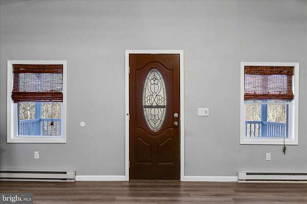Welcome home! This charming one-level residence offers the perfect blend of privacy, usable land, and beautiful mountain views-all while being conveniently located between Berkeley Springs and Winchester, VA. and sitting on 7.05 Acres. As you approach, you'll immediately notice the expansive covered front porch (12' x 23') and the oversized side deck (30' x 16'), ideal for outdoor dining, entertaining, or simply enjoying the peaceful surroundings. Step inside to the spacious living room, where luxury vinyl plank flooring flows throughout the main living areas and 10.5-foot ceilings create an open, airy feel. A wood-burning stove adds cozy charm for those crisp winter evenings. To the left of the living room is the first updated full bath, featuring tile flooring, a newer vanity, and a walk-in shower. This bathroom has its own dedicated hot water heater and convenient outdoor access leading to a screened-in covered side deck complete with a relaxing hot tub. Off the living room, you'll also find two comfortable secondary bedrooms and a laundry room with tile flooring and direct access to the backyard. The kitchen offers several recent updates, including LVP flooring, newer appliances (refrigerator, built-in microwave, electric range, double wall oven, and dishwasher), and easy access to the large side deck-perfect for indoor-outdoor flow. The private primary bedroom is located just off the kitchen and features dual closets and a nicely sized en-suite bathroom. Outdoors, there's a substantial covered storage area, ideal for a tractor, firewood, or equipment, plus a connected shed for all your yard tools. Don't Miss This One!!